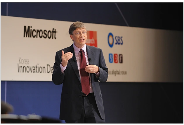 2008년 SBS의 대표 지식나눔 글로벌 포럼인 SDF에서 연설하고 있는 빌 게이츠 당시 MS 회장