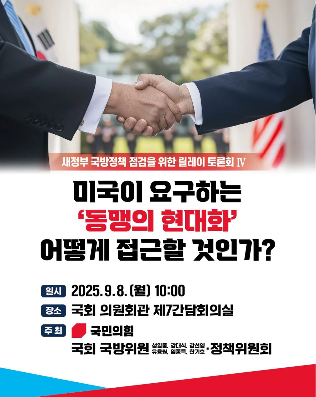국회 국방위원회 국민의힘 소속 의원 일동, '미국이 요구하는 동맹의 현대화 어떻게 접근할 것인가?' 토론회 개최