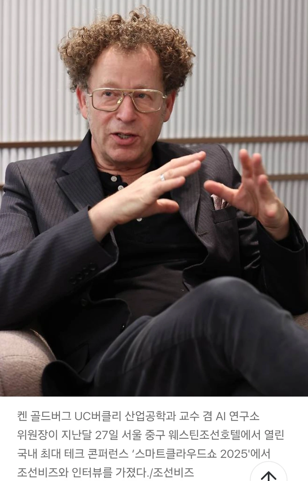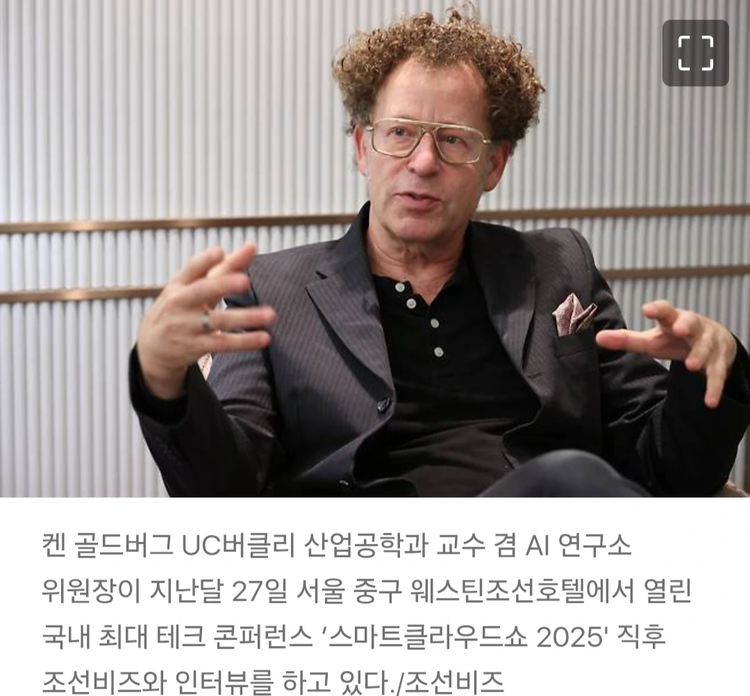 켄 골드버그 UC버클리 산업공학과 교수 겸 AI 연구소 위원장은 지난달 27일 서울 중구 웨스틴조선호텔에서 열린 국내 최대 테크 콘퍼런스 ‘스마트클라우드쇼 2025′ 직후 조선비즈와의 인터뷰에서 “다가올 피지컬 AI 시대를 맞아 한국이 제조와 의료 로보틱스 분야에서 강점을 살릴 수 있을 것”이라고 말했다. 그는 “한국은 우수한 로보틱스 연구 인력과 삼성, 현대차, LG 등 제조·자동화 역량이 뛰어난 기업을 다수 보유하고 있다”며 “현재 미국과 중국이 핵심 AI 연구에서는 앞서고 있지만, 한국이 피지컬 AI의 현장 적용과 확산에 주력한다면 글로벌 시장에서 차별화된 경쟁력을 확보할 수 있을 것”이라고 평가했다.