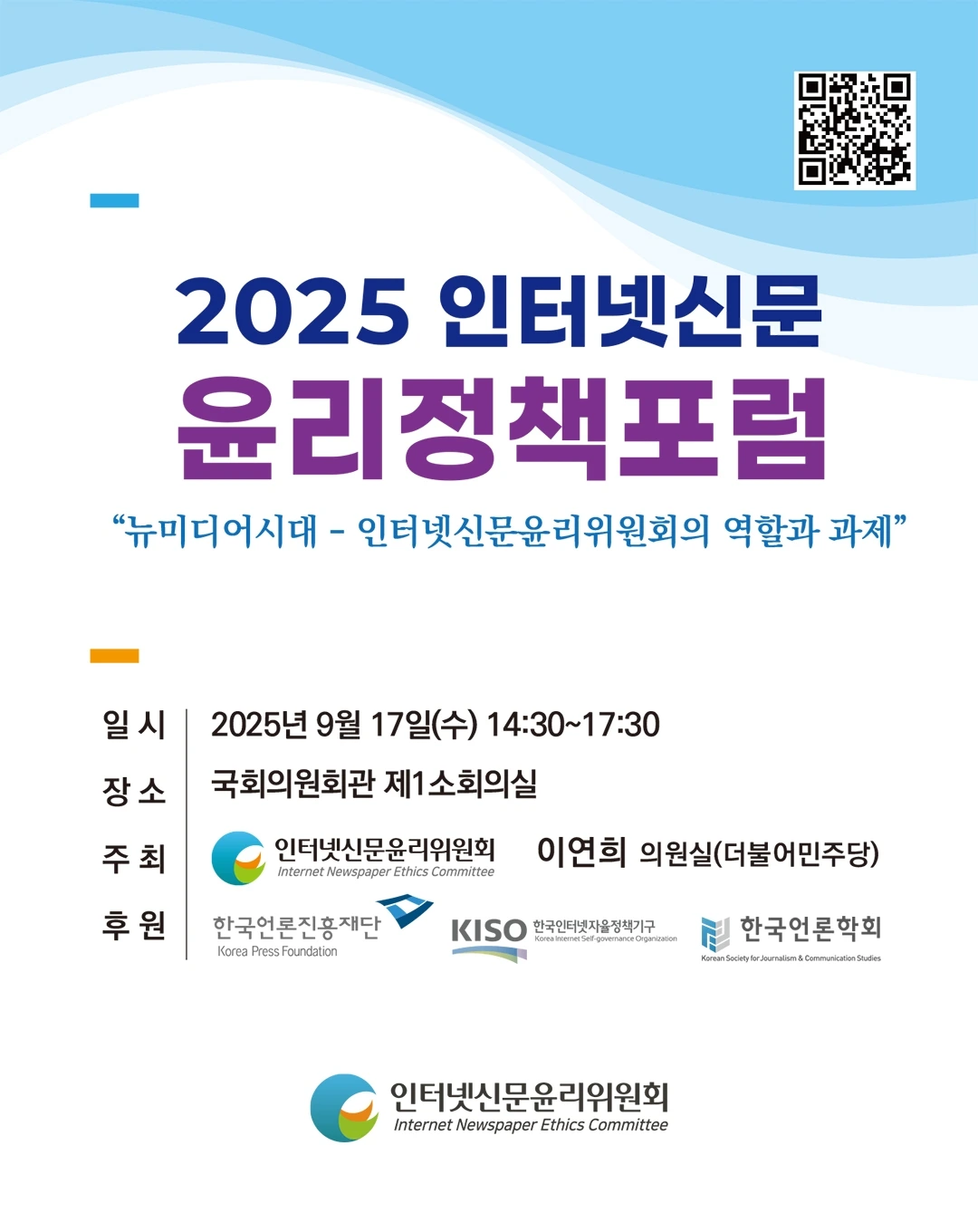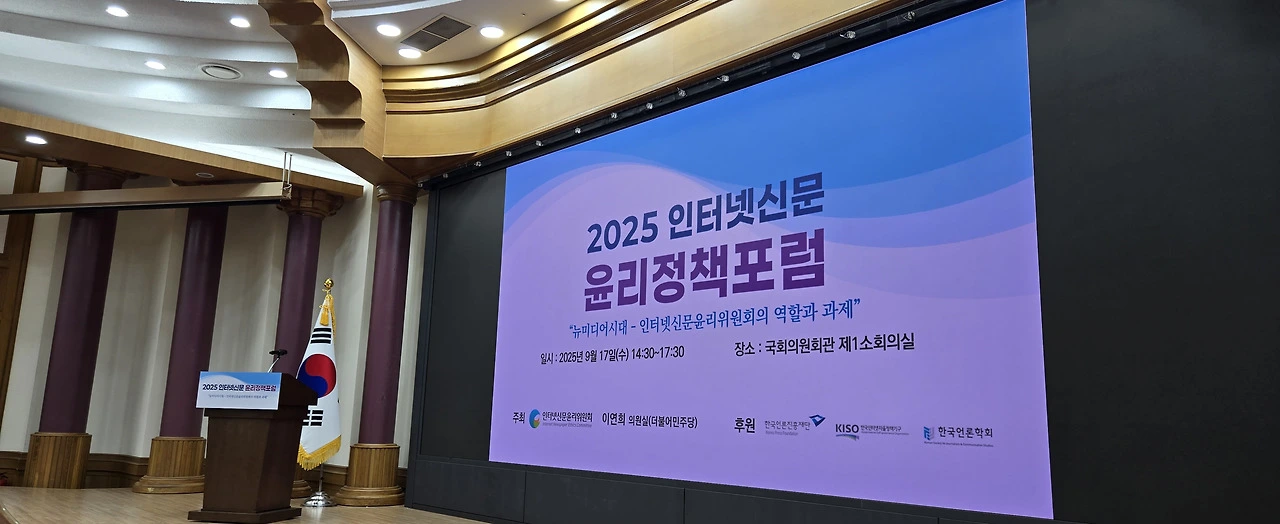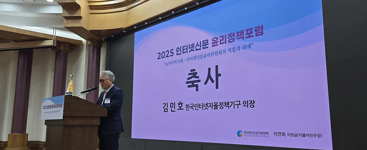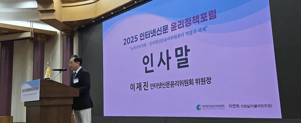 한편 이번 행사는 인터넷신문윤리위원회와 더불어민주당 이연희 의원실이 공동 주최하고 한국언론진흥재단, 한국인터넷자율정책기구(KISO), 한국언론학회가 후원했다. ‘뉴미디어시대, 인터넷신문윤리위원회의 역할과 과제’를 주제로 발제와 전문가 토론이 이어졌으며, 학계와 시민사회, 언론계 인사 60여 명이 참석해 인터넷신문의 윤리 기준 정립과 정책 지원 방안을 논의했다.