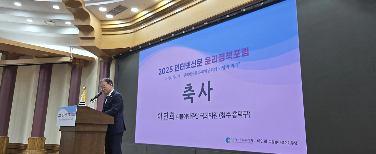 이연희 의원은 축사에서 “인터넷신문은 전체 미디어 시장에서 40%에 달하는 영향력을 갖고 있다”며 “AI와 허위정보 확산이라는 새로운 도전 앞에서 신뢰받는 언론 생태계를 만들기 위해 국회도 적극 지원하겠다”고 말했다.