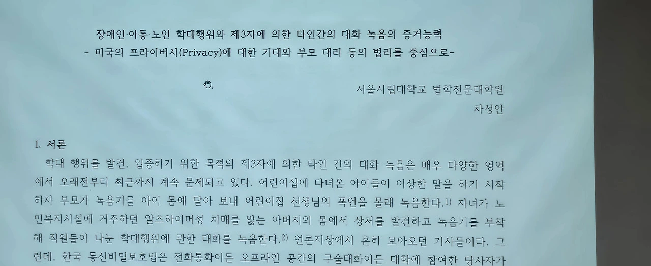 발제를 맡은 차성안 서울시립대학교 법학전문대학원 교수는 “장애아동에 대한 학대를 입증하고자 제3자가 녹음을 하여도, 통신비밀보호법으로 인해 징역 1년 이상 10년 이하로 처벌하는 것은 다른 나라와 비교해도 매우 과도한 처벌이며 예외 규정이 마련되어야 한다”고 밝혔다.