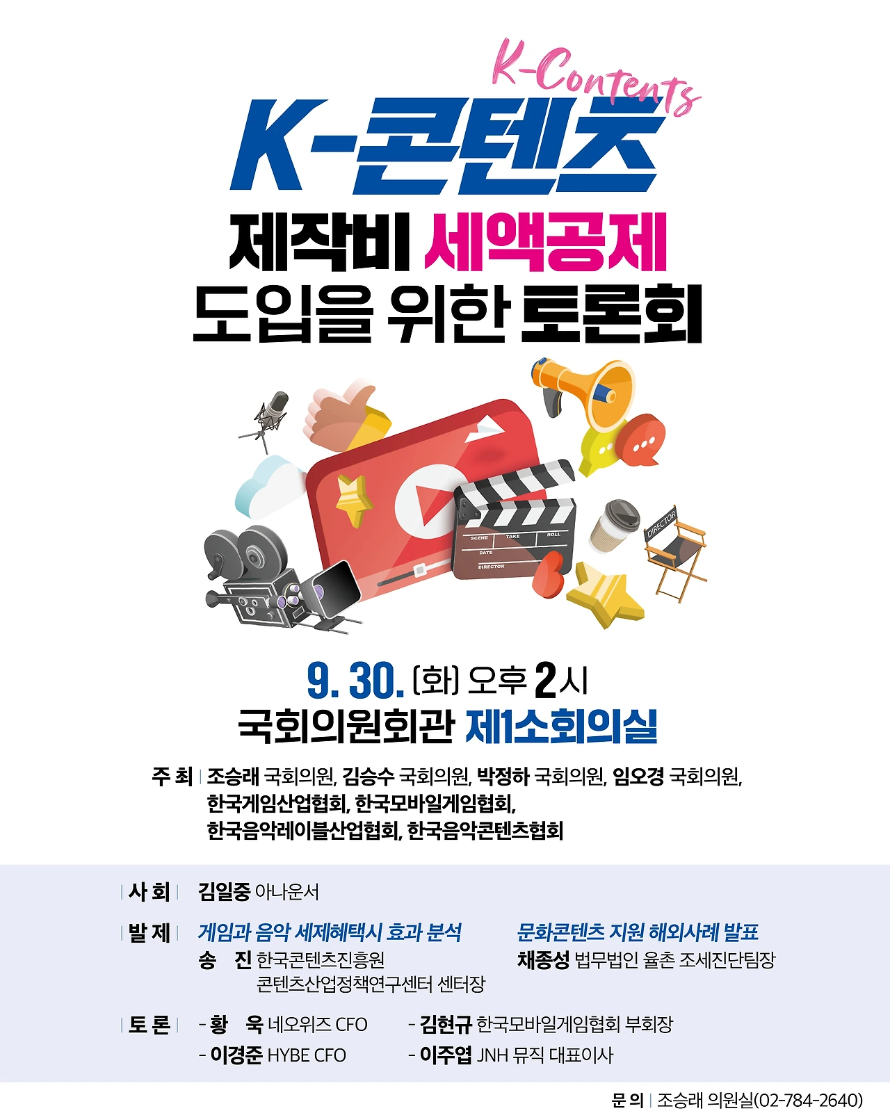 주최 : 조승례 김승수 박정하 임오경 국회의원, 한국게임산업협회, 한국모바일게임협회, 한국음악레이블산업협회, 한국음악콘텐츠협회