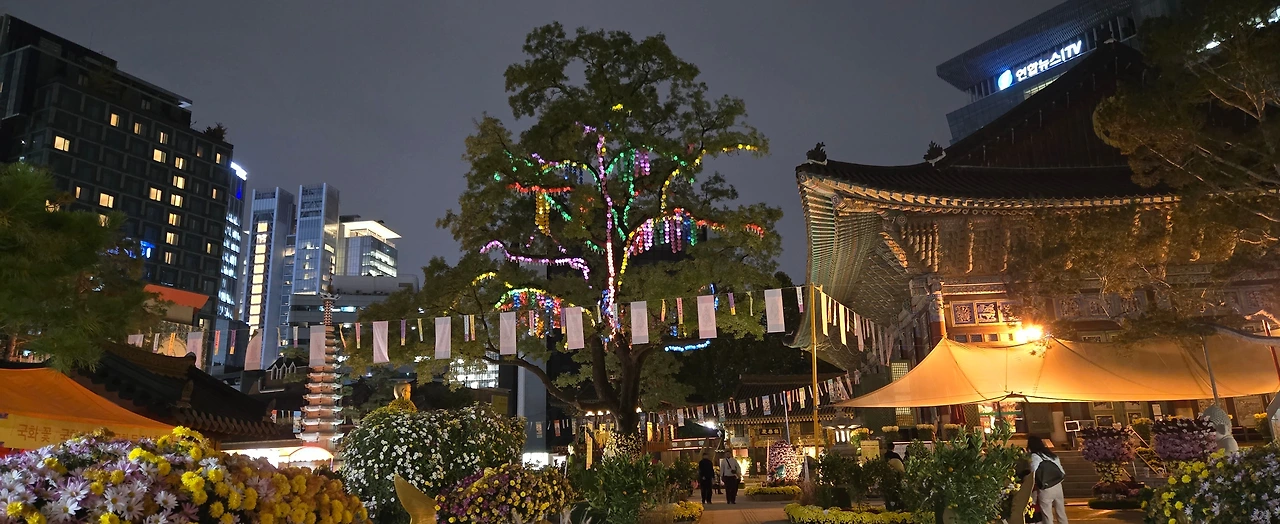 조계사의 저녁은 초파일처럼 연등으로 화려하고