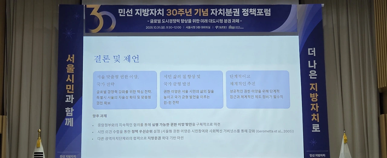 민선지방자치 30주년 기념 자치분권 정책포럼