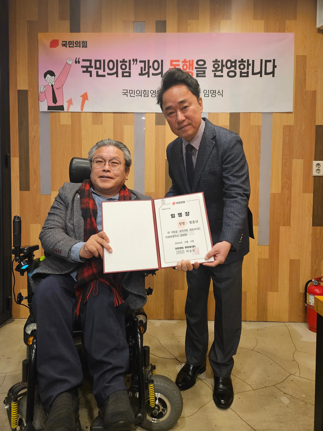 휠체어 타는 장애인 인권운동가. 대구대 직업재활 박사 학위 전문성으로 국민의힘 정권교체동행위원회 장애인위원장 등으로 대한민국 장애인 복지 향상에 일익을 담당하고 있다.