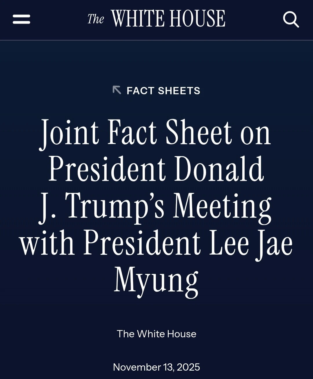 "Joint Fact Sheet on President Donald J. Trump’s Meeting with President Lee Jae Myung"그 내용은 그야말로 충격적이다.