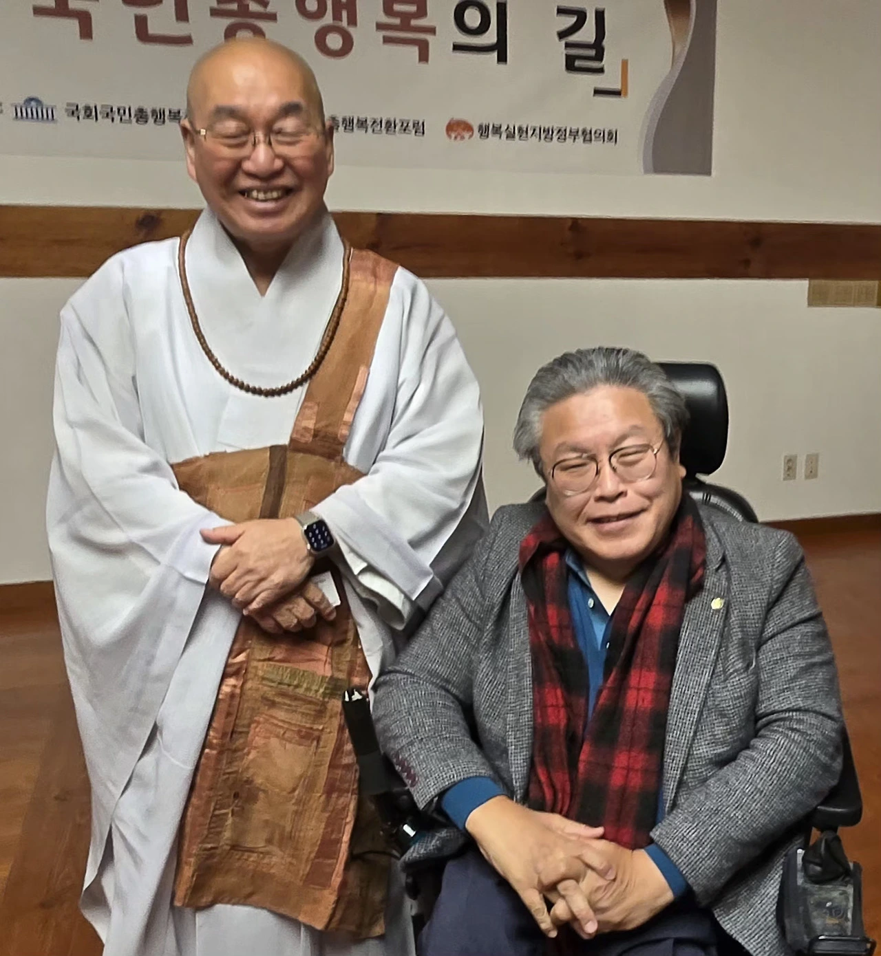 그렇다고 이런 일을 민간의 노력만으로 하기에는 한계가 있습니다. 개인의 심리만을 강조하다 보면 자칫 사회·문화적, 제도적 개선을 간과하게 되고, 결국 모든 책임을 개인에게 돌리는 오류에 빠질 수 있습니다. 그런데 최근 국회에서 국민 총 행복 증진을 위한 정책 포럼이 만들어지고, 지방 자치 단체에서는 행복 실현 지방 정부 협의회가 열리며, 민간에서도 국민 총 행복 전환 포럼이 설립되는 등 다양한 활동이 펼쳐지는 모습을 보며 저 역시 매우 기쁘고 반가웠습니다. 복지 지수 57위와 심리적 행복 지수 117위의 간극을 좁히는 일은 민간의 영역이고, 복지 지수 57위와 물질적 지수 34위의 차이를 줄이는 일은 제도 개선으로 해결해야 합니다. 그래야 세계 어디를 가도 ‘대한민국 참 살 만하다.’, ‘한국 사람들 표정이 밝다.’는 말을 들을 수 있을 것입니다.