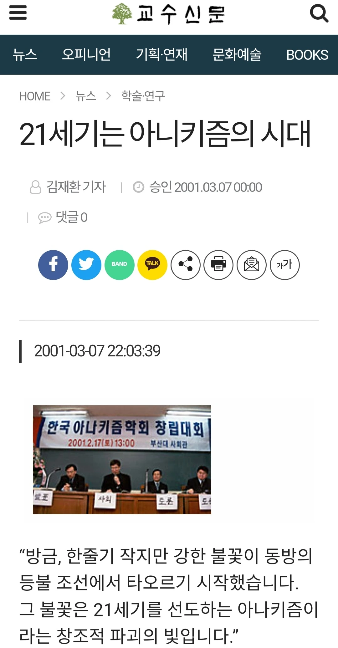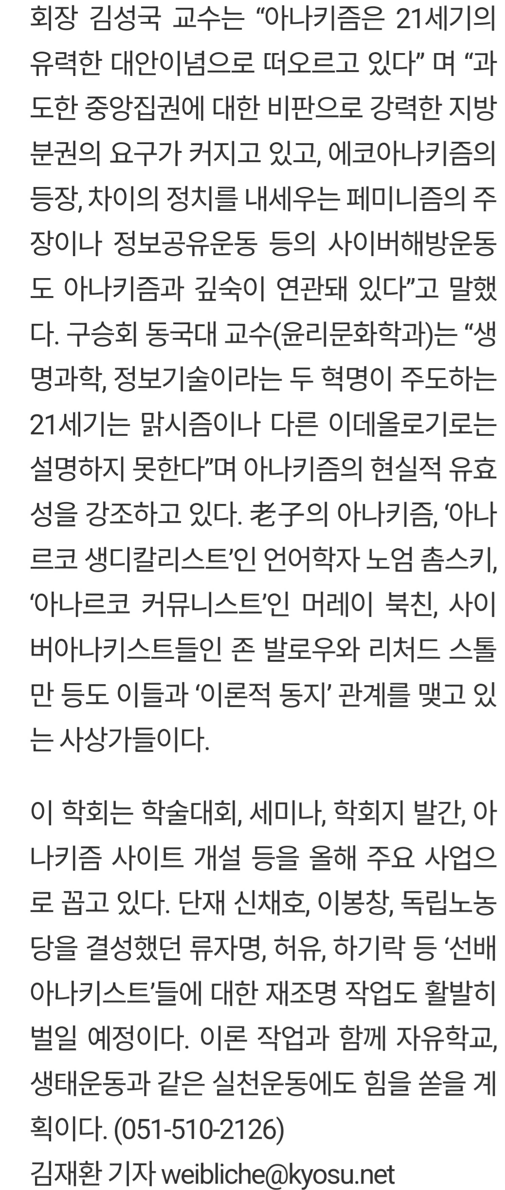 이재명 불지른 이른바 "환빠" 논란 때문에, 현실정치에 뛰어들면서 오랫동안 잊고 있었던 '한국아나키즘학회'가 생각이 나서 검색을 해보니..25년 전 창립기사가 네이버에 아직 살아 있어 반가운 마음에 가져왔다.