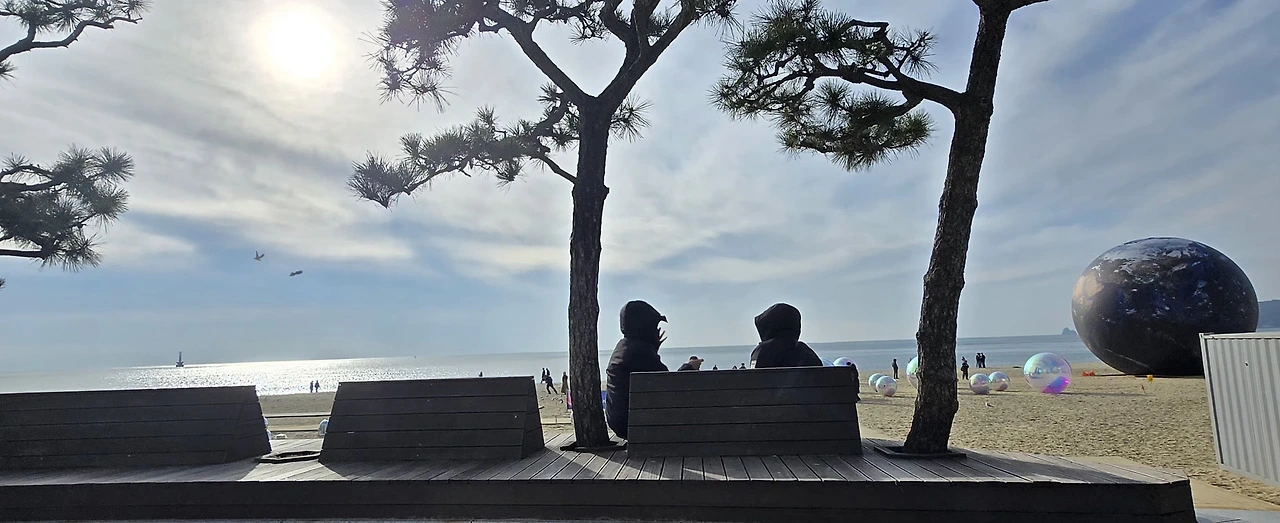제가 원래 혼잡한 여름 피서지철 바다보다 한적한 겨울바다 풍경을 더 사랑하는데, 크리스마스를 맞아서인지 해운대 바다 색깔이 유난히 맑고 아름다웠습니다.