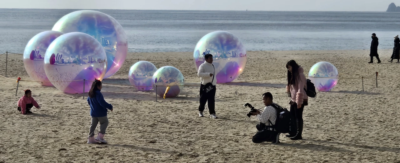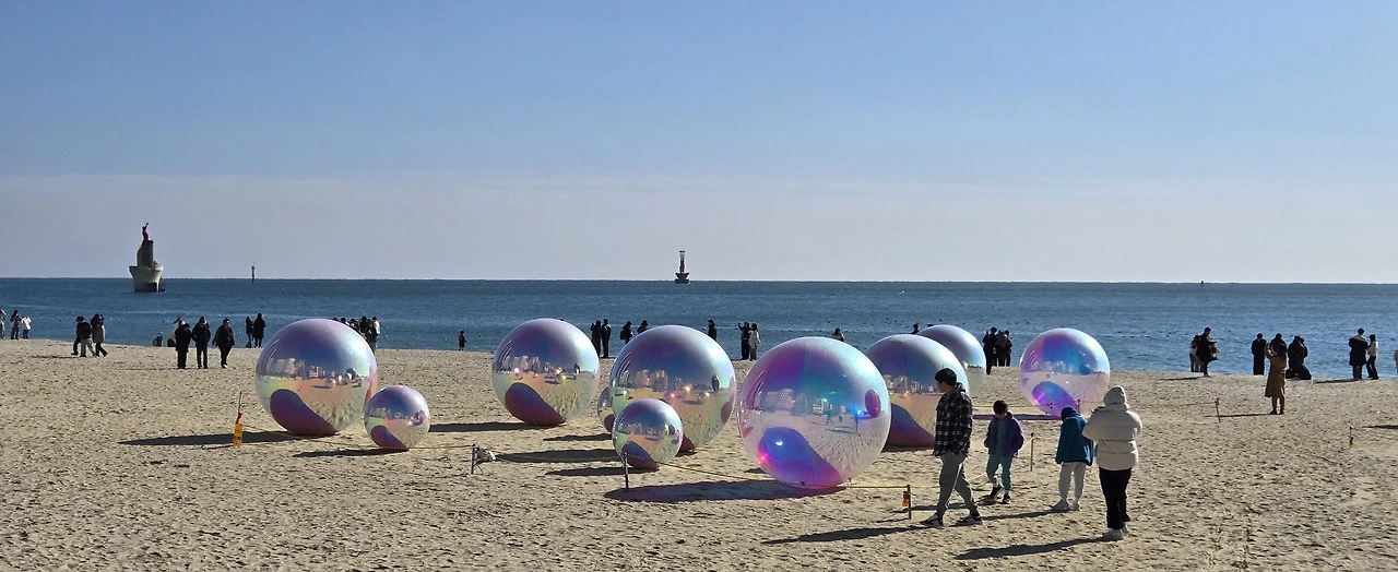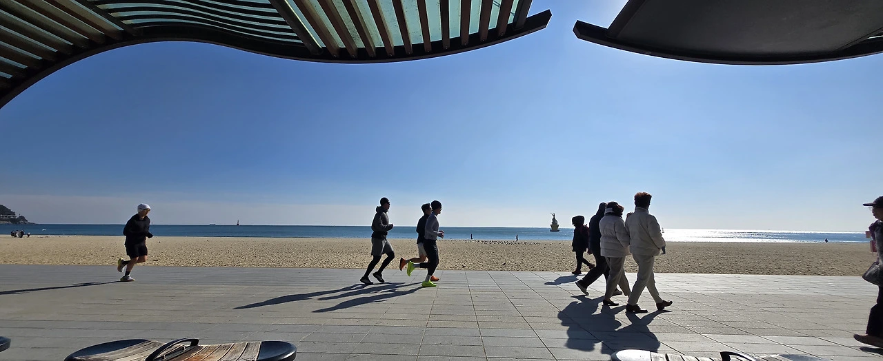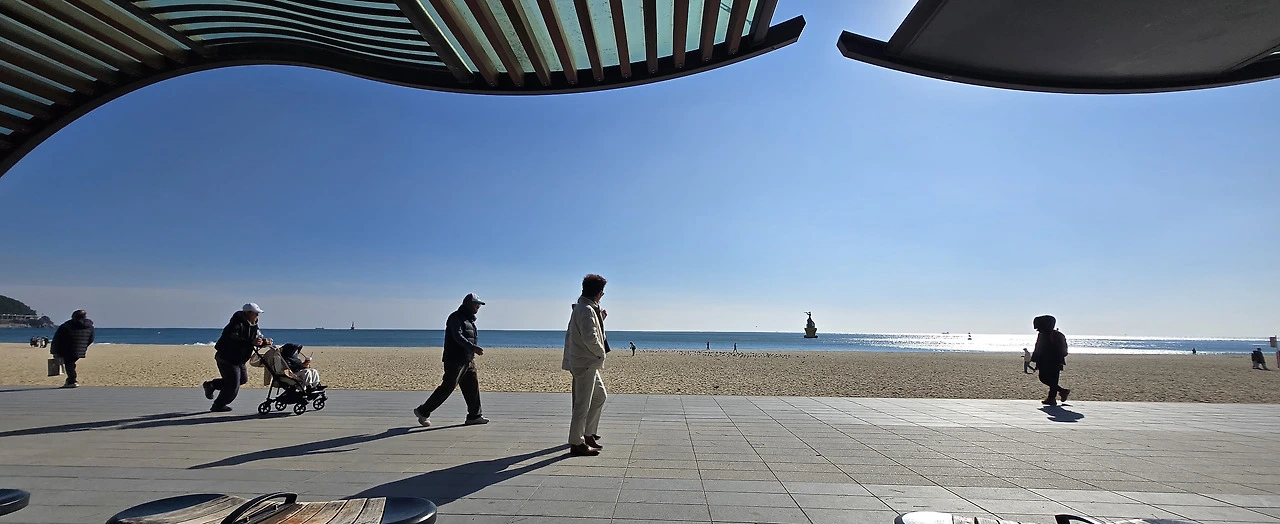 제가 원래 혼잡한 여름 피서지철 바다보다 한적한 겨울바다 풍경을 더 사랑하는데, 크리스마스를 맞아서인지 해운대 바다 색깔이 유난히 맑고 아름다웠습니다.