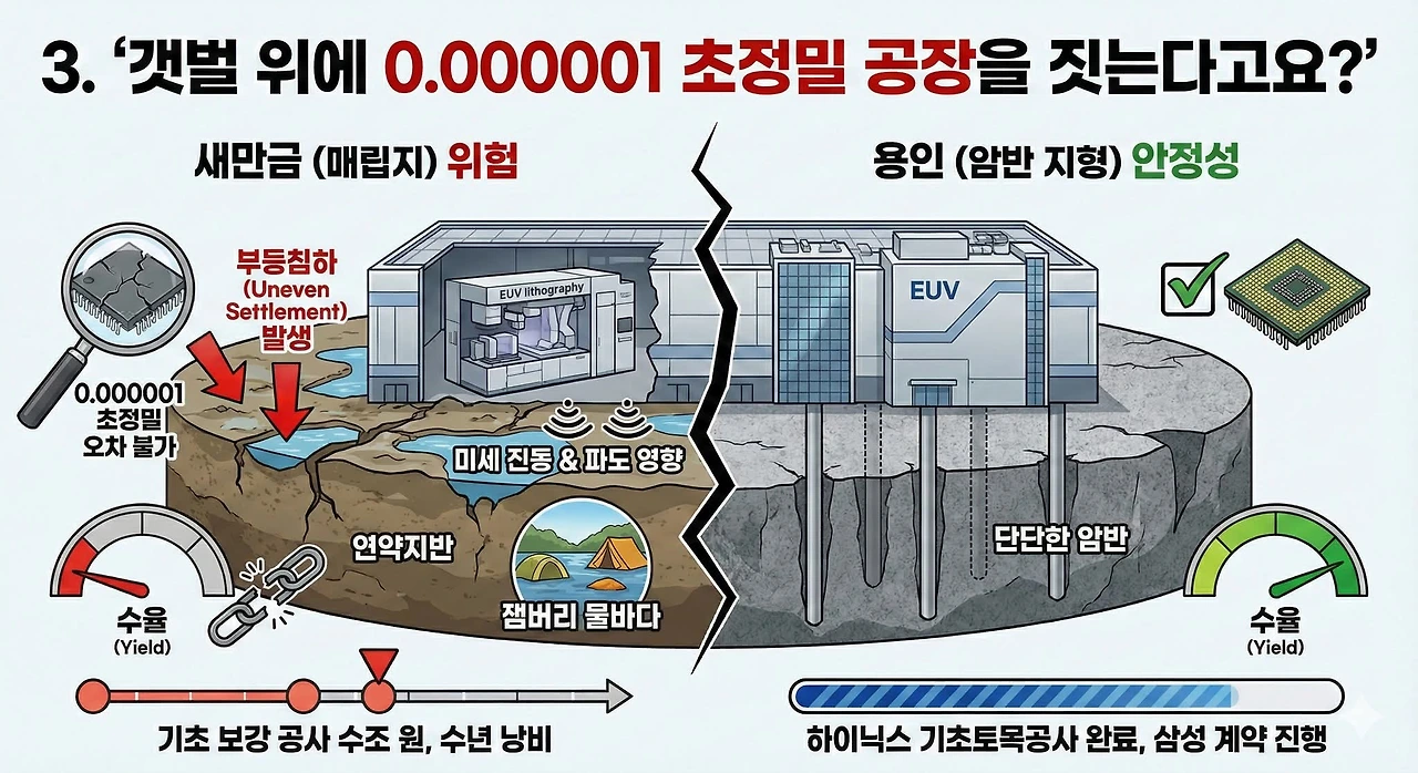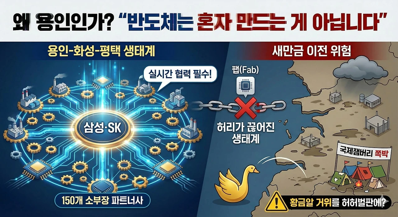 최근 용인에 조성 중인 반도체 클러스터를 호남 새만금에 짓자는 주장이 이재명 정권 장관과 호남 정치인들 사이에서 일어나고 있다.
