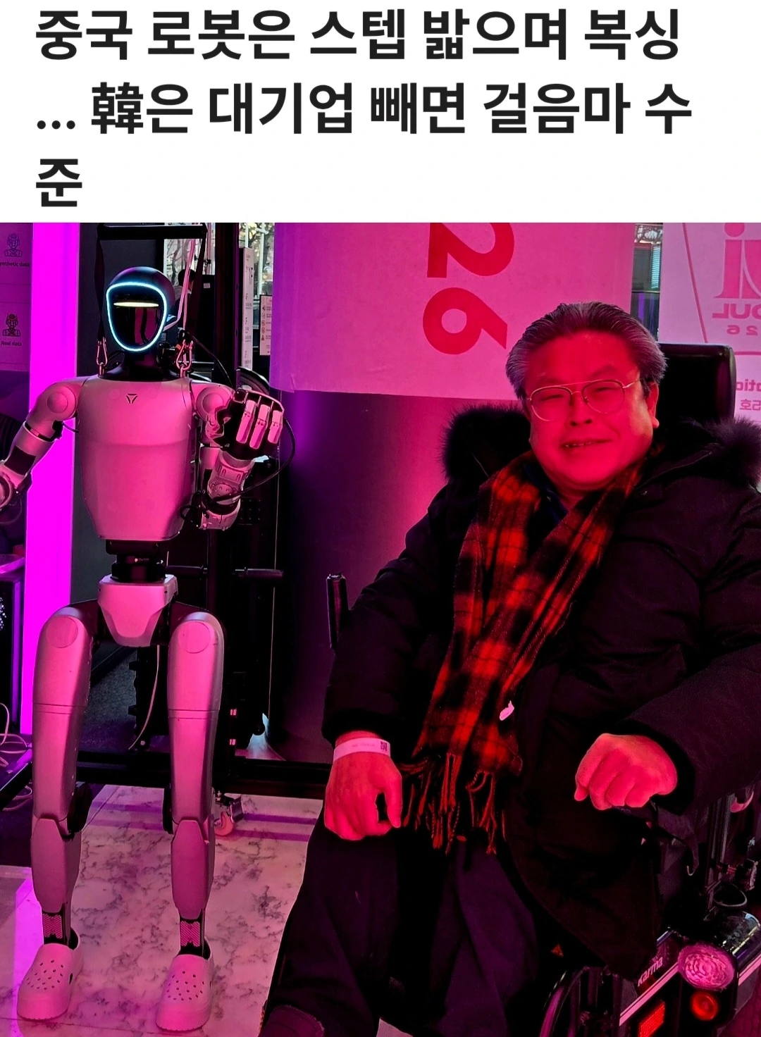 업계에서는 중국의 휴머노이드 로봇 기술이 한국을 크게 앞선다고 평가하고 있다. CES 2026에서 보스턴다이내믹스의 아틀라스가 큰 관심을 받았지만 이는 사실상 미국 기업 기술이고 LG전자의 클로이드도 양산 제품으로 보기에는 이르다고 평가된다. CES에서 한국 기업들이 많은 관심을 받았지만 한국의 로봇 산업 자체 경쟁력은 낮다는 것이다.