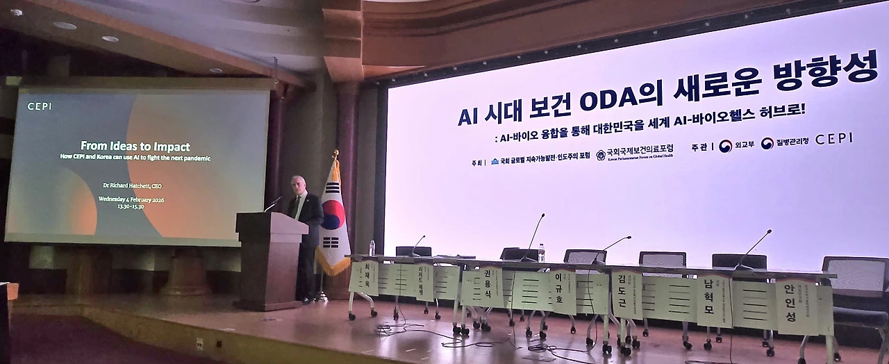 전 세계 감염병 대응의 사령탑인 감염병혁신연합(CEPI)이 대한민국 국회를 찾아 인공지능(AI)을 활용한 국제 보건 협력의 새로운 패러다임을 제시했다.