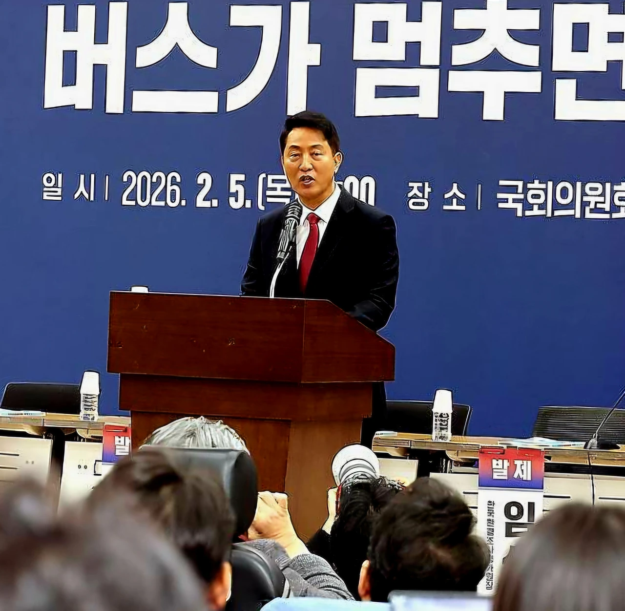 5일 국회에서 열린 '시내버스 필수 공익 사업 법안 관련 국회 토론회'에 참석한 오 시장은 "지금 이 시점에서 현재의 제도를 냉정하게 점검할 필요가 있다"며 "시민 불편을 어떻게 최소화할지, 그러면서 노조의 쟁의권을 존중할 수 있을지 균형점을 찾아야 한다"고 밝혔다.