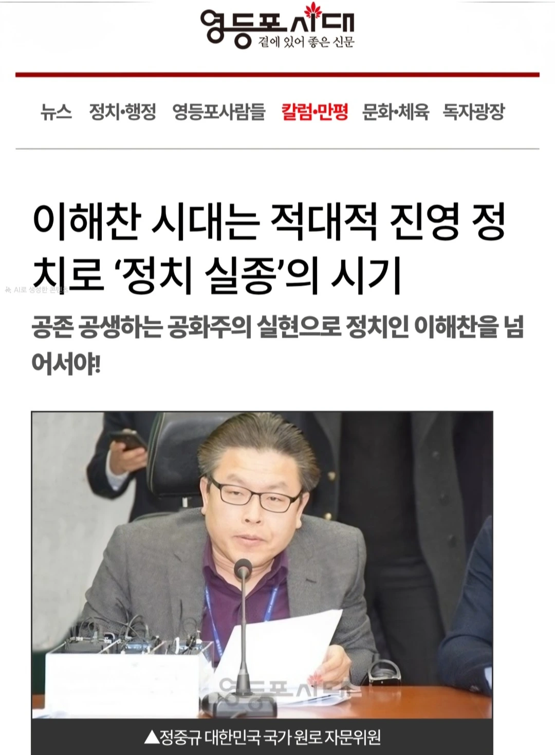 [정중규 칼럼 / 시대유감] 이해찬 시대는 적대적 진영 정치로 ‘정치 실종’의 시기