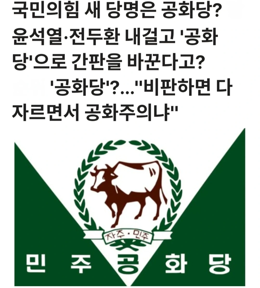 그런데 장동혁 세력이 공화당을 불러온 것은 그런 차원보다는 왠지 이승만 대통령의 자유당과 함께 박정희 대통령의 공화당이 보수우파정권의 대표적 정당이었다는 그 껍데기만 보고 있는 것 같아, 또 그런 기치로 앞으로도 기껏 이념전쟁이나 벌일 태세인 것 같아 씁쓸하기만 하다.