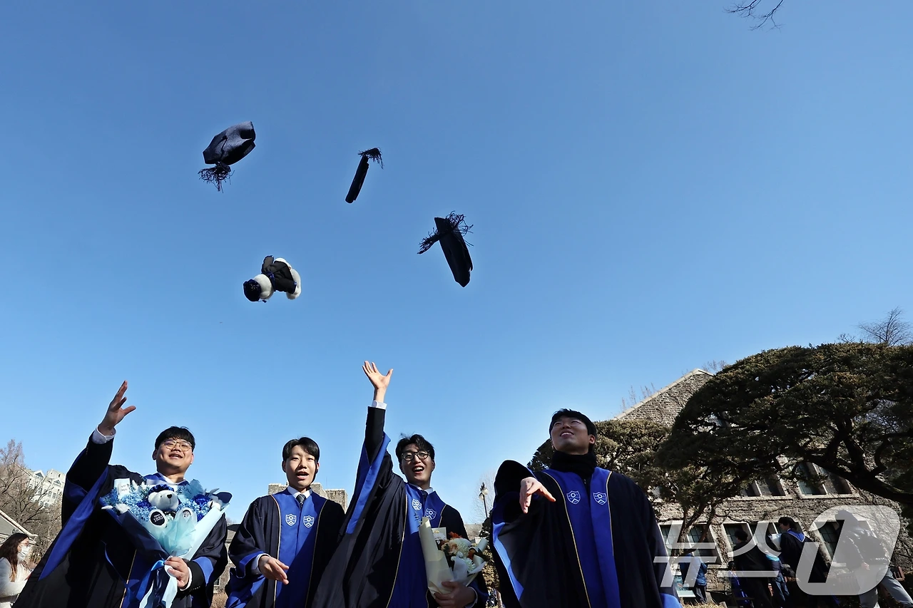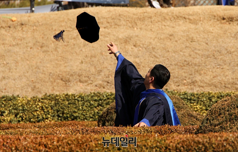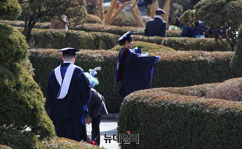 축하 꽃다발 들고 청색 졸업 가운 걸친 학생들이 다들 얼마나 이쁘고 늠름한지..역시 노친네답게 내 마음은 "저들이 모두 졸업 후 취업을 해야할 것인데"에 대한 염려..