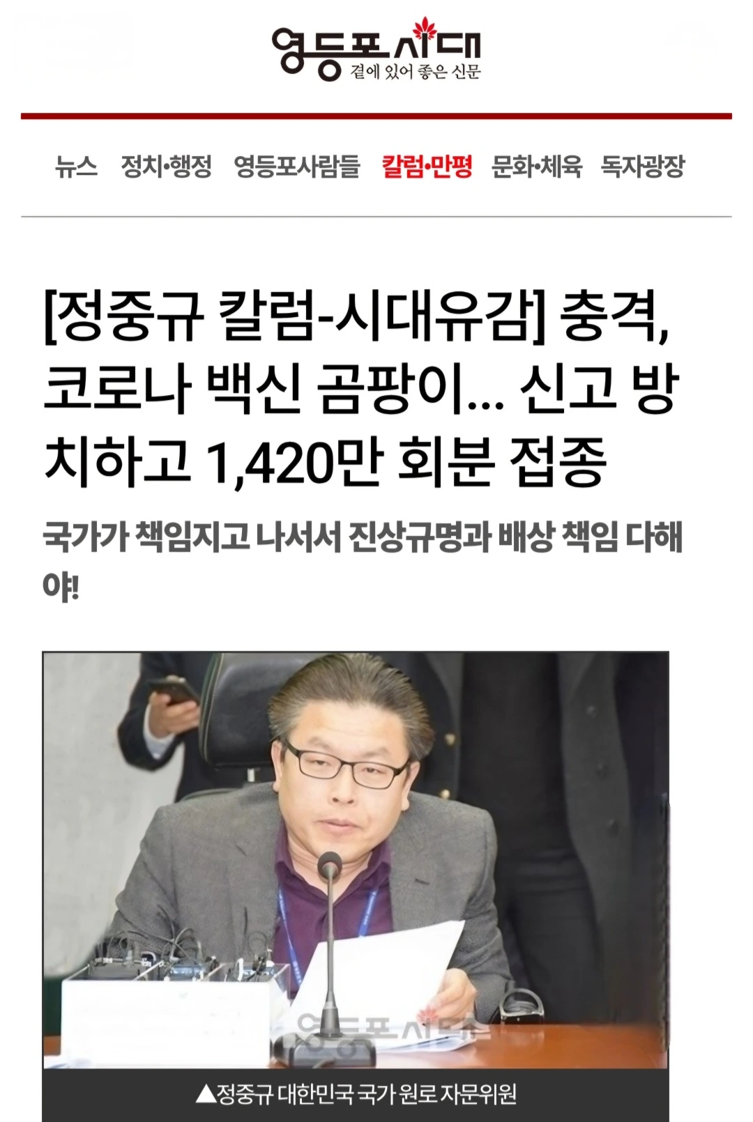 [정중규 칼럼-시대유감] 충격, 코로나 백신 곰팡이...신고 방치하고 1,420만 회분 접종