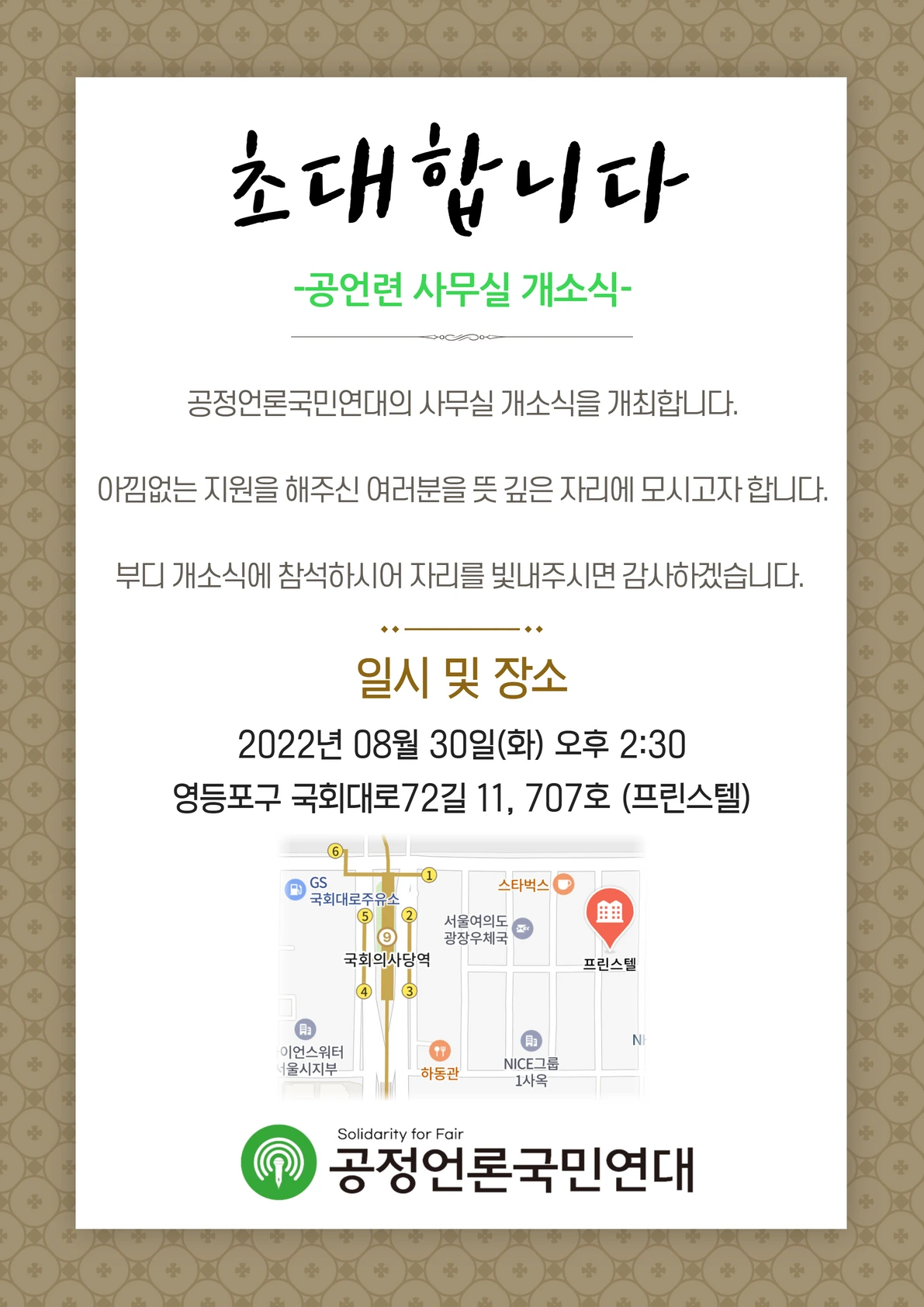 이에 우리는 그 누구에게도 불편부당해야 할 언론 본연의 자세를 회복하고, 대한민국 민주주의를 수호해야 한다는 절박한 심정으로 <공정언론국민연대>를 발족하고자 한다. 우리는 공정언론을 실현하고자 하는 각계각층의 모든 분들과 함께 이 운동을 펼쳐 나갈 것이다.