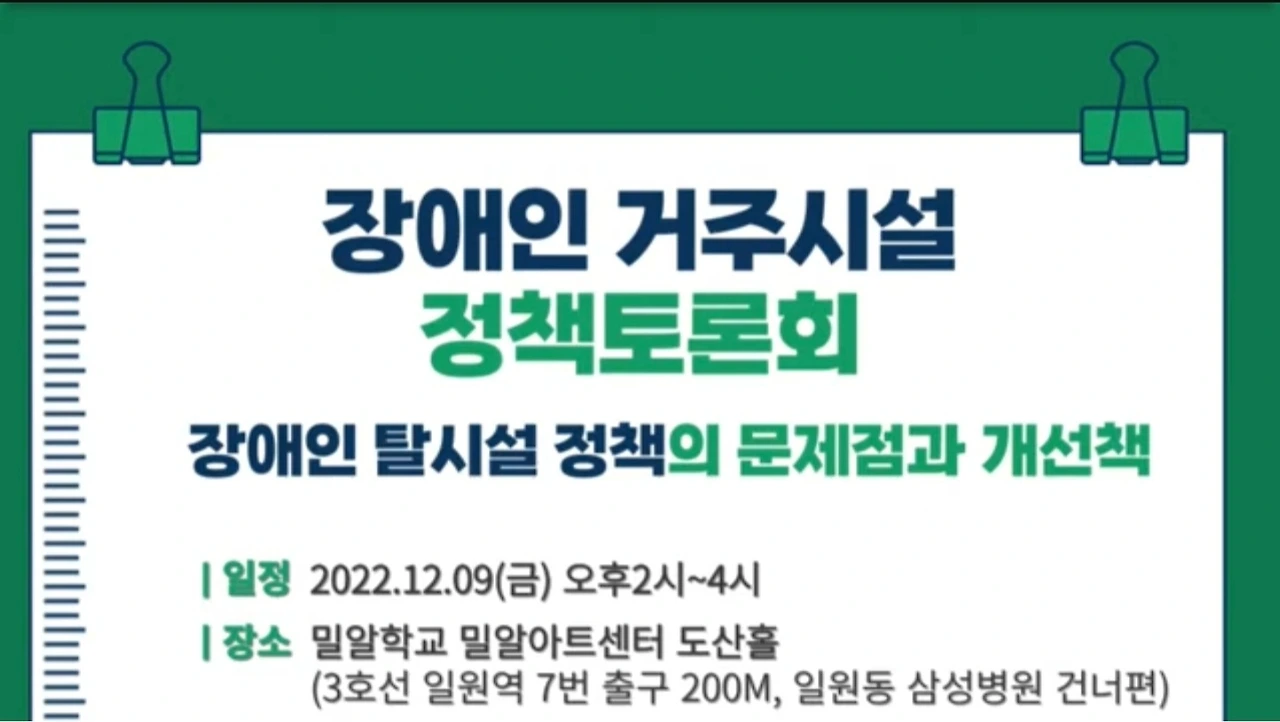 지난 2020년 12월 국회에서 더불어민주당 최혜영 의원에 의해 ‘장애인 탈시설 지원 등에 관한 법률안’이 발의되고, 2021년 8월 보건복지부에서 ‘탈시설 장애인 지역사회 자립지원 로드맵’(이하 로드맵)이 발표되자, 장애인 탈시설 문제로 관련 당사자들 사이의 갈등이 최고조로 달하게 되었습니다.