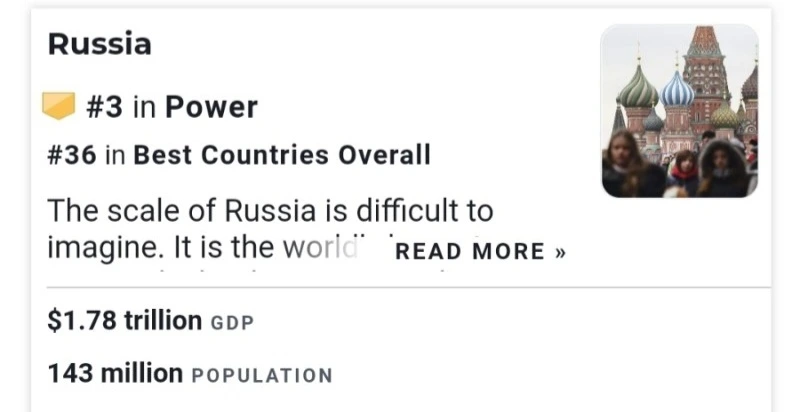 러시아의 경우, '거대한 영토', '우크라이나 전쟁으로 인한 세계 우려', '방대한 천연자원에 기반을 둔 경제 대국' 등으로 설명했다.