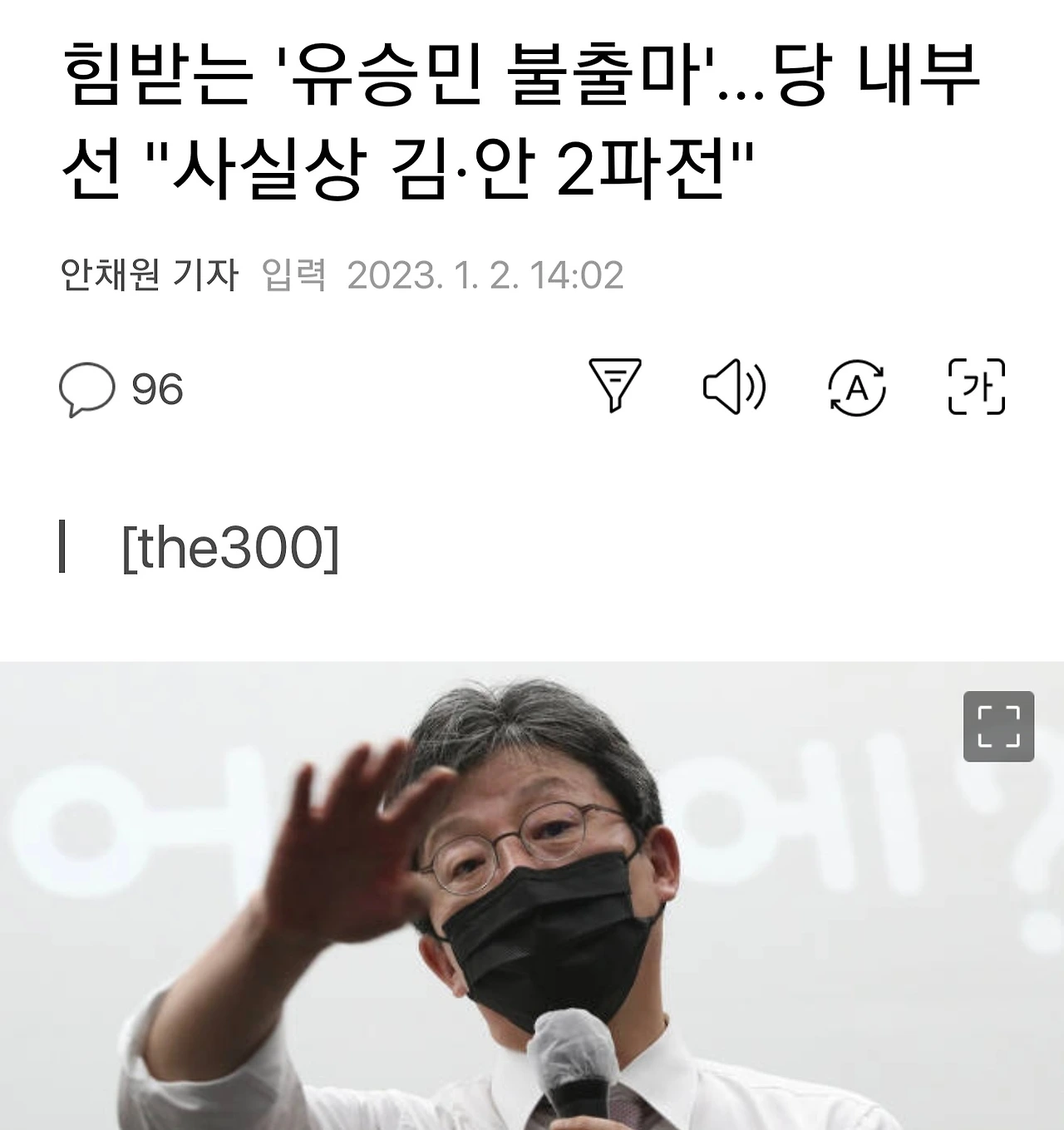 - 정치인 유승민이 그래도 미래권력을 염두에 두고 있다면, 유승민계라는 울타리를 걷어차고 뛰어넘는 융화력을 보여줄 필요가 있다. 물론 소수정파이니 그 응집력을 이해는 되지만, 그것이 정치인 유승민을 결정적인 순간마다 좌절시키는 한계가 되고 있다.