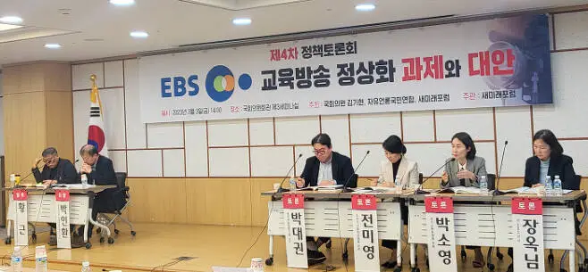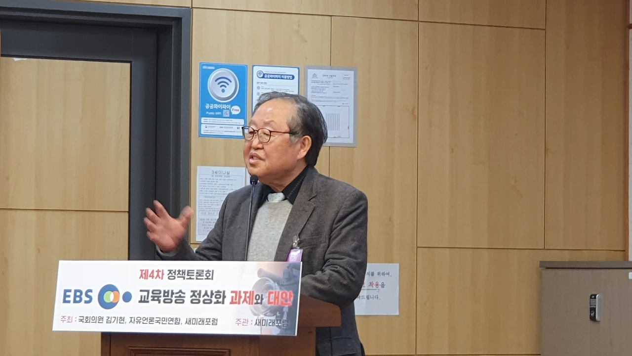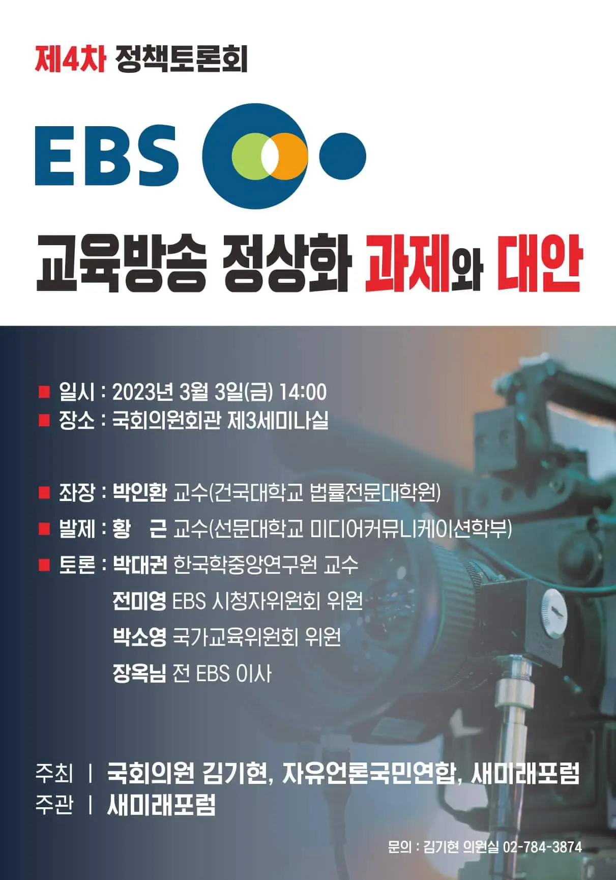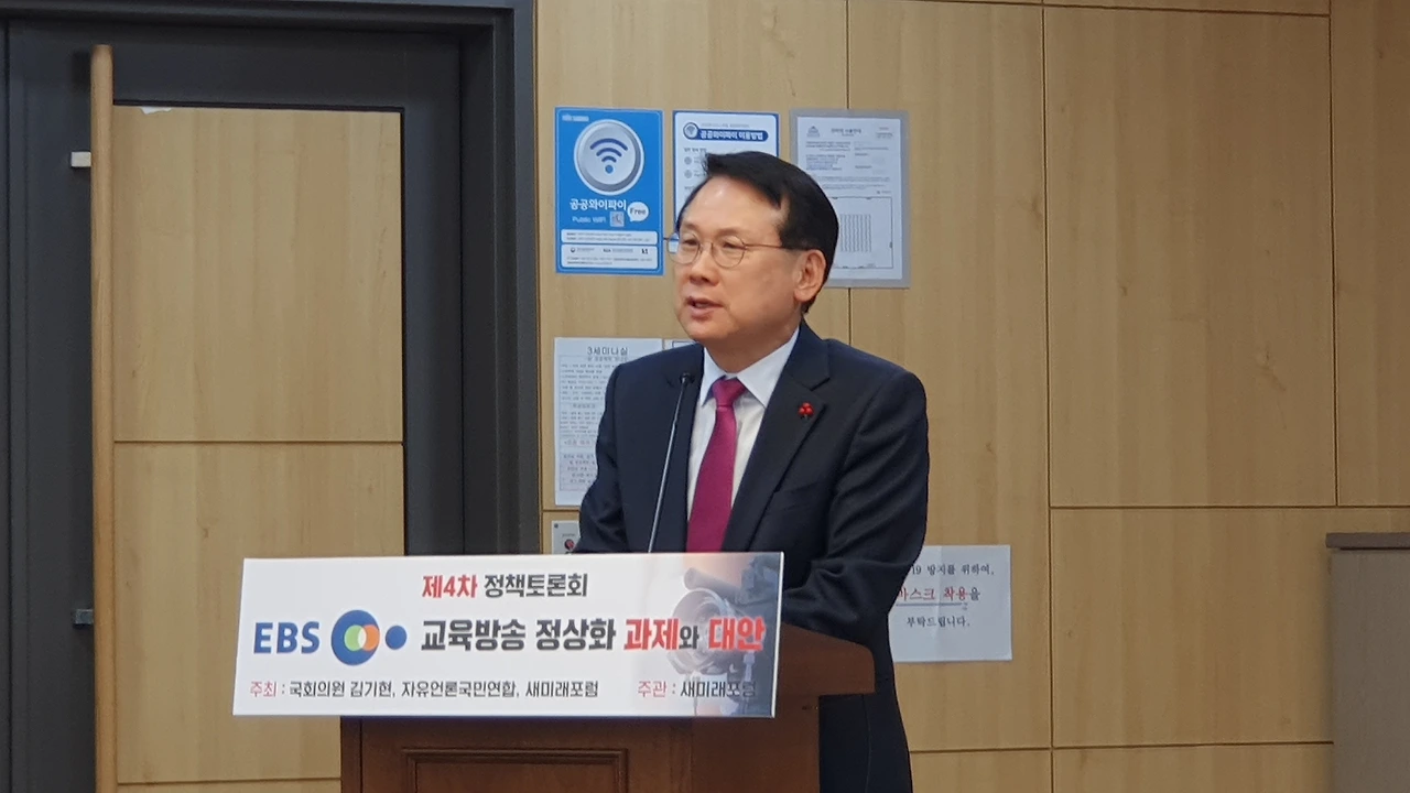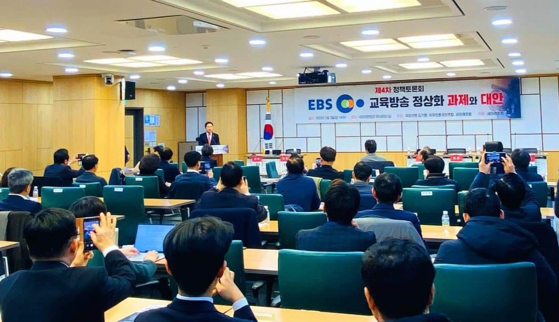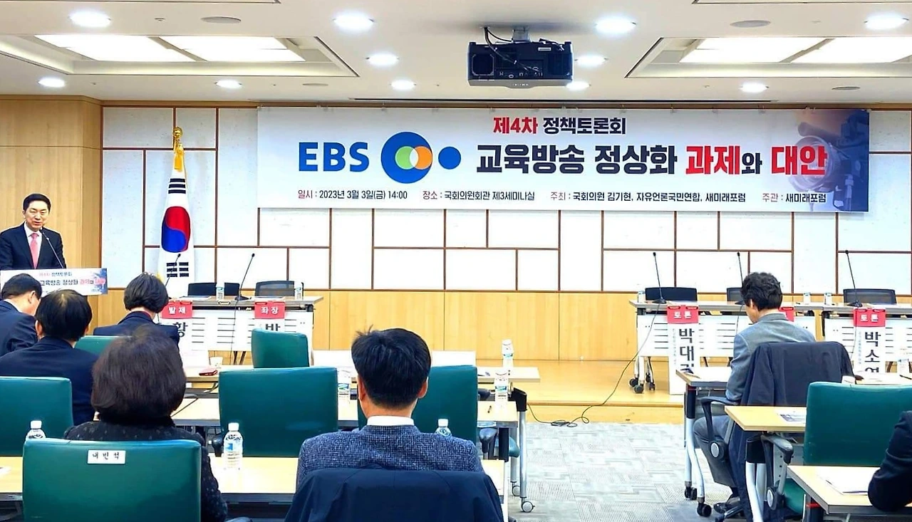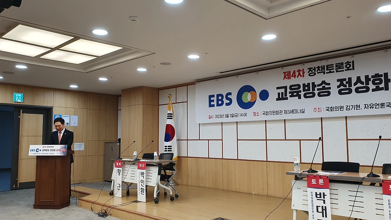 3일 국회 의원회관에서 김기현 후보, 자유언론국민연합, 새미래포럼 주최로 'EBS 교육방송 정상화 과제와 대안' 토론회가 열렸다. 황근 선문대 미디어커뮤니케이션학부 교수 발제에 이어 박대권 한국학중앙연구원 교수, 장옥님 전 EBS 이사 등이 토론에 참여했다.