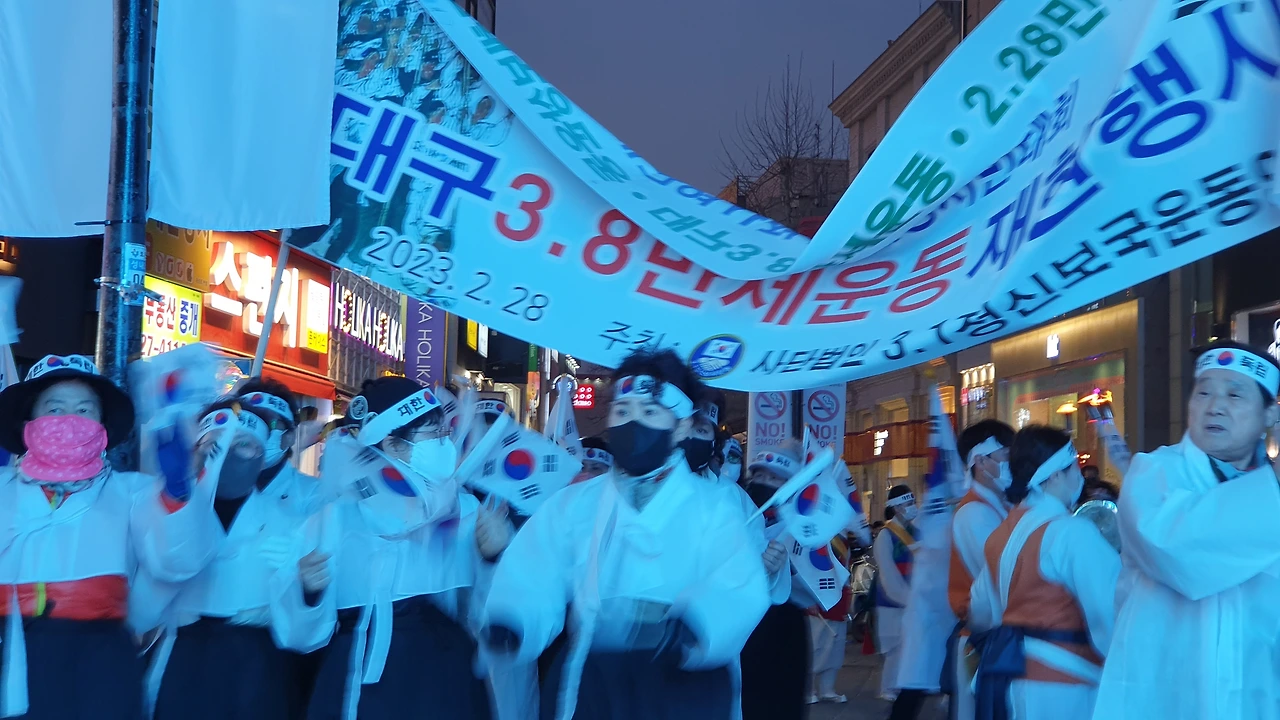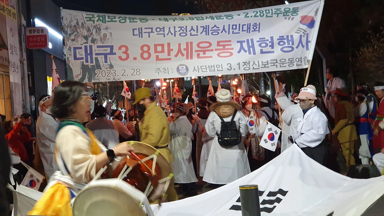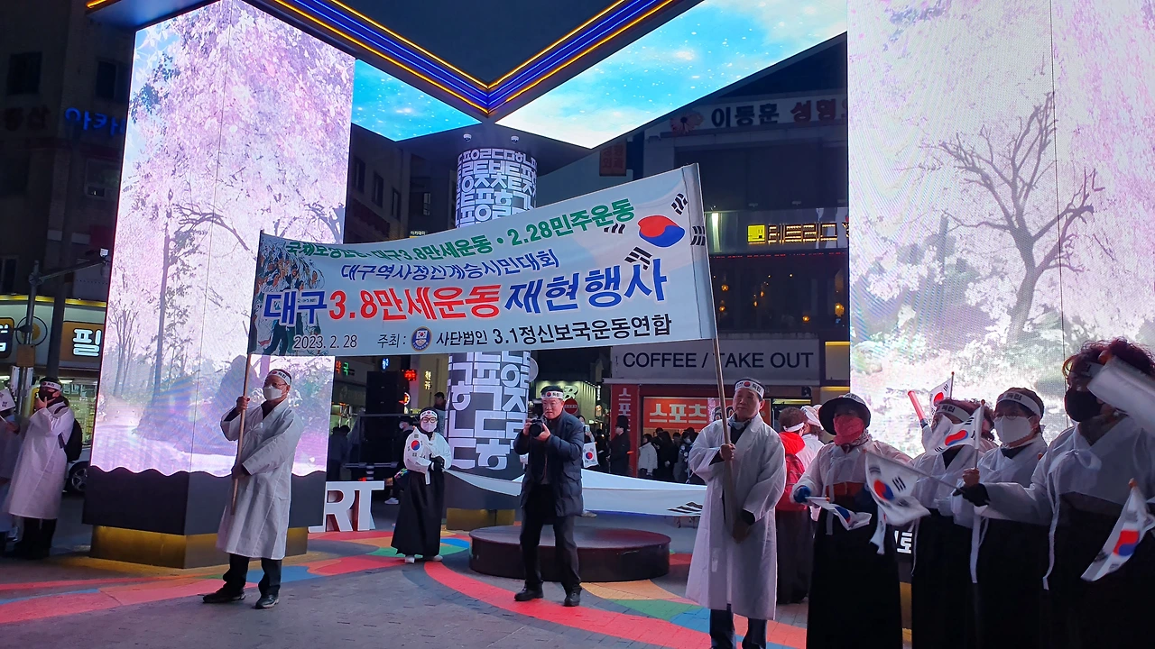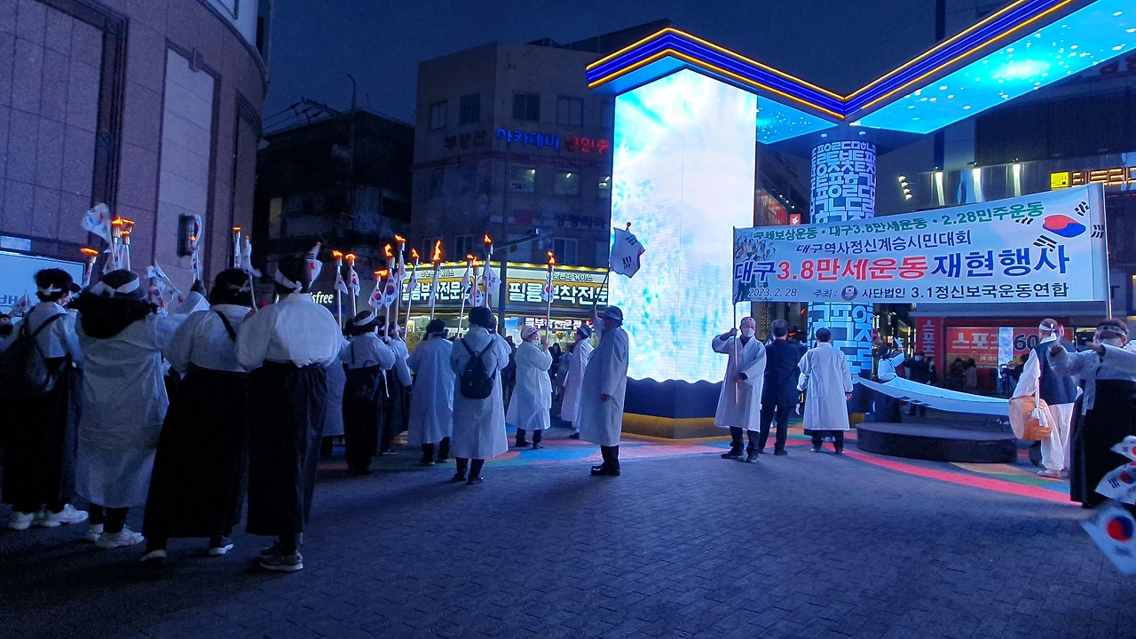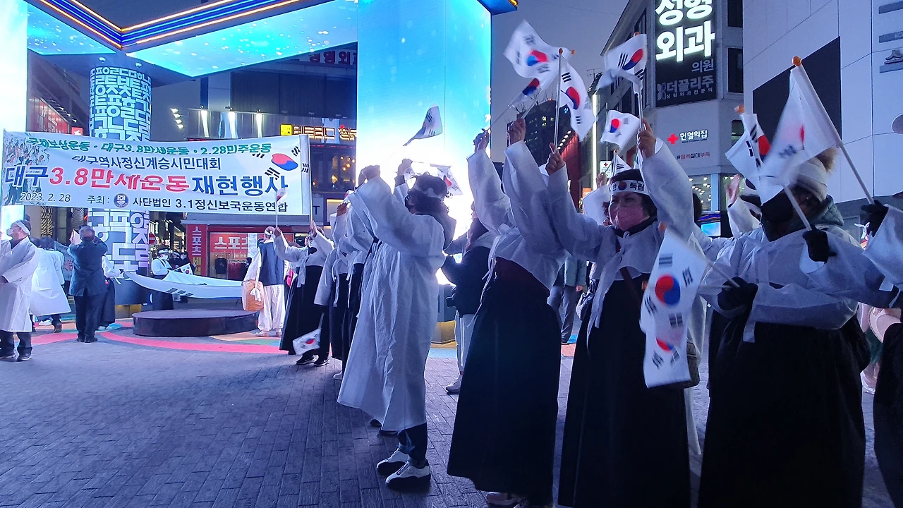 2023.2.28. 오후6시. 국채보상운동기념공원 대백광장 - 중앙파출소 앞 - 현대백화점 광장 - 청라언덕 입구