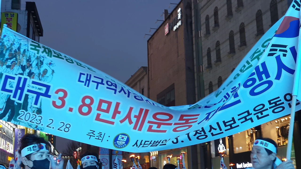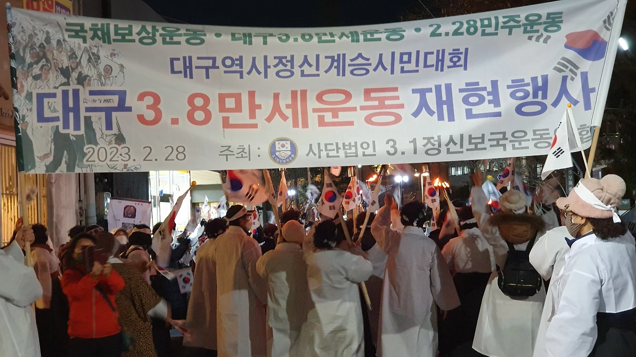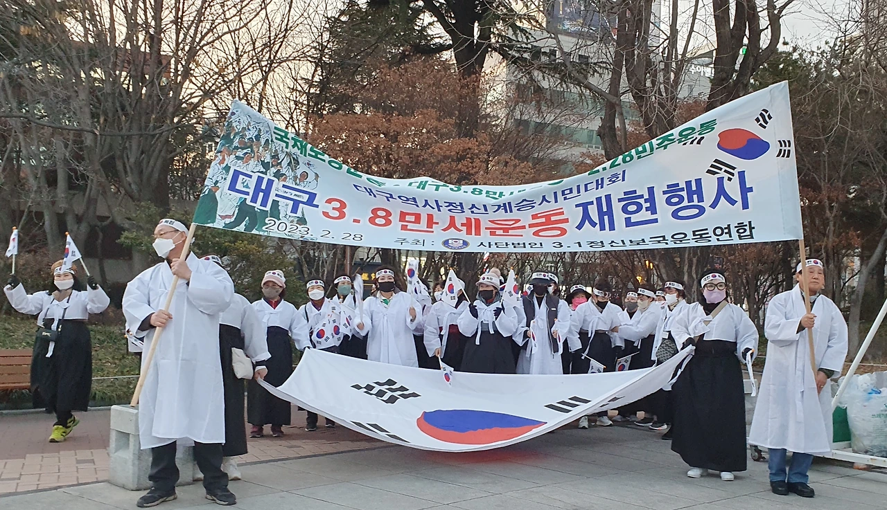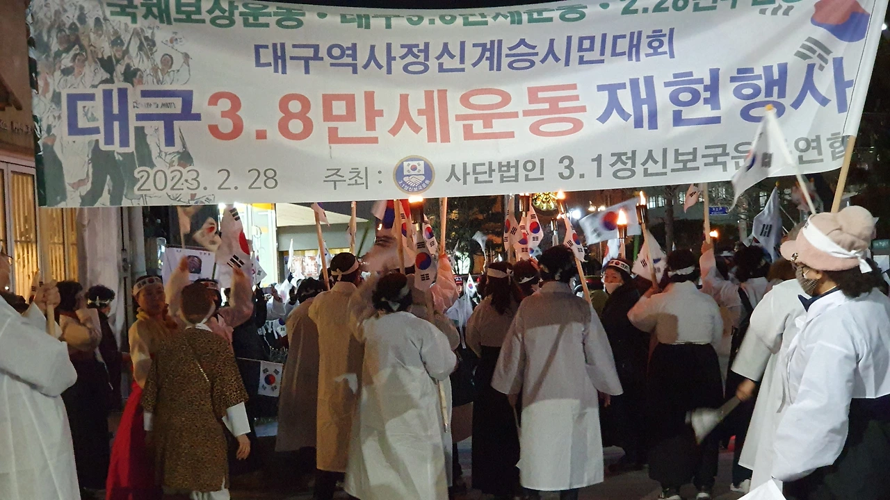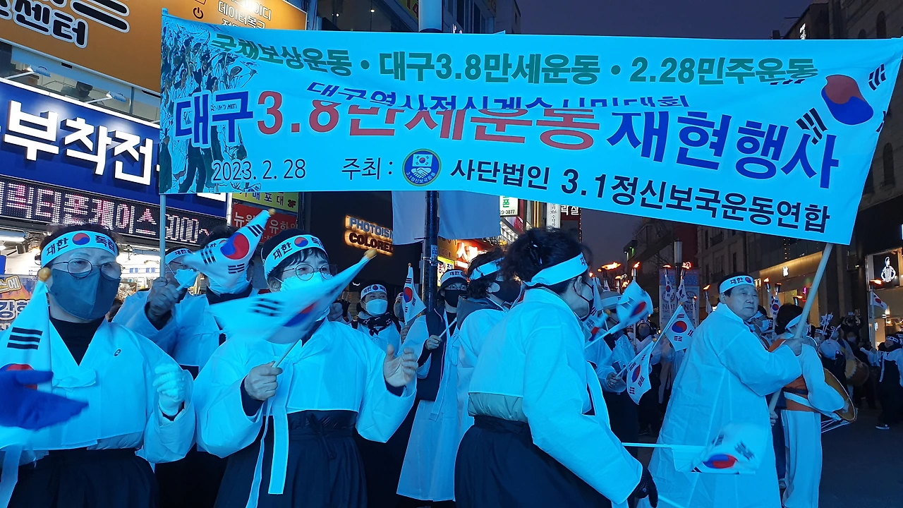 2023.2.28. 오후6시. 국채보상운동기념공원 대백광장 - 중앙파출소 앞 - 현대백화점 광장 - 청라언덕 입구