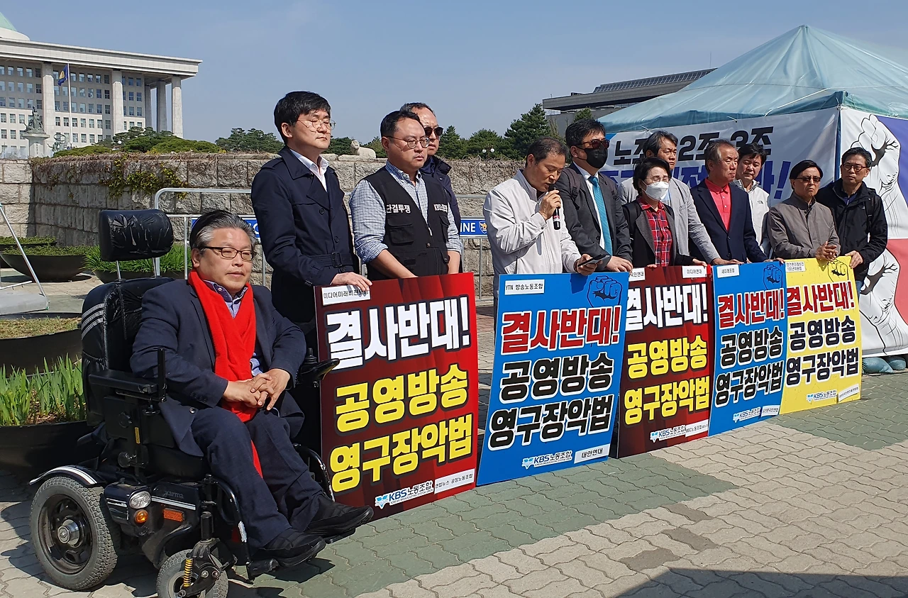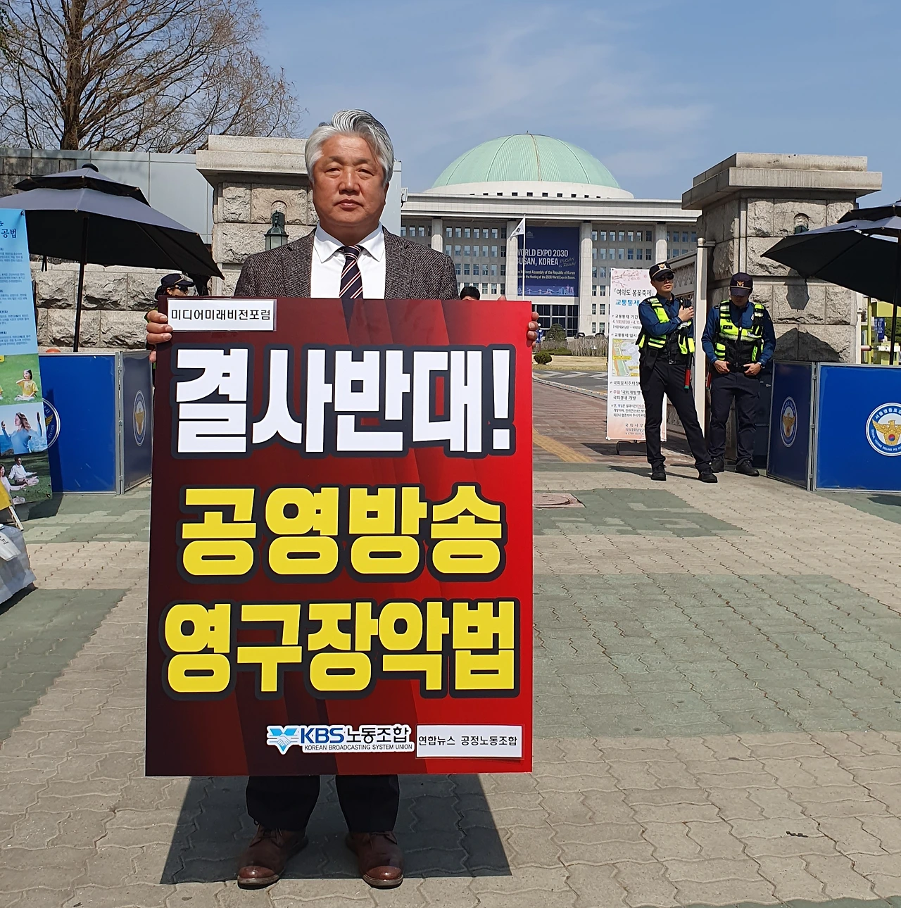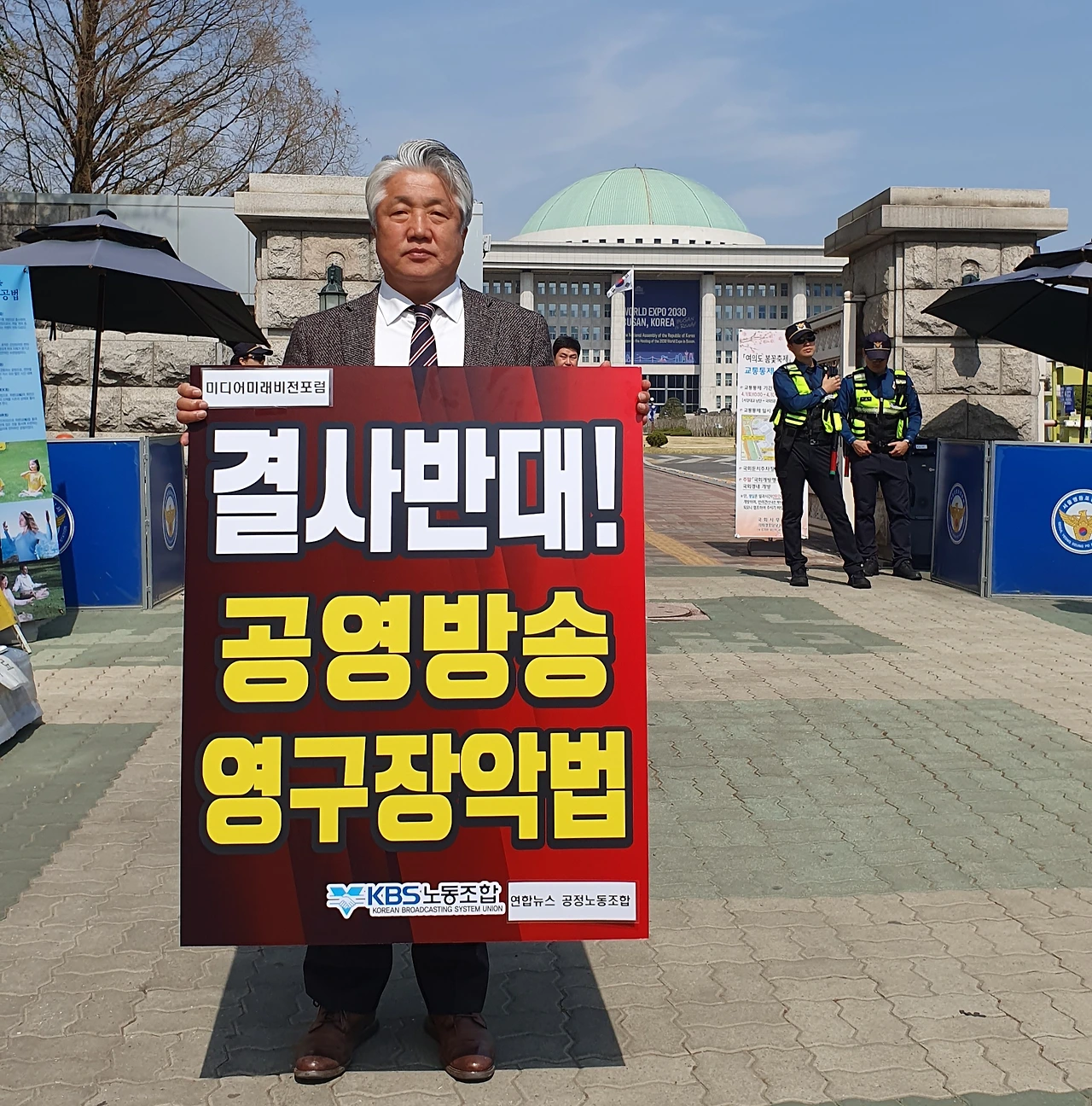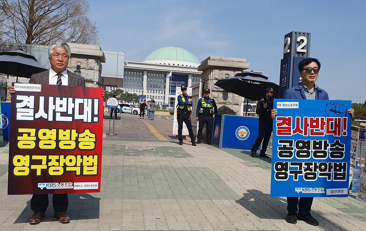 공정언론국민연대(이하 공언련)는 KBS 노조, KBS 공영노조, MBC 제3노조, YTN 방송노조, 연합뉴스 공정노조, 대한민국언론인총연합회(언총), 대안연대 등 34개 언론시민사회단체와 연대해 4월3일 오전 10시부터 국회 정문 앞에서 방송법 개악에 반대하는 <민노총 공영방송 영구장악 결사저지 범국민 릴레이 피켓 시위>에 돌입한다.