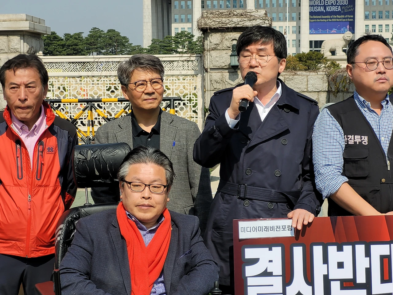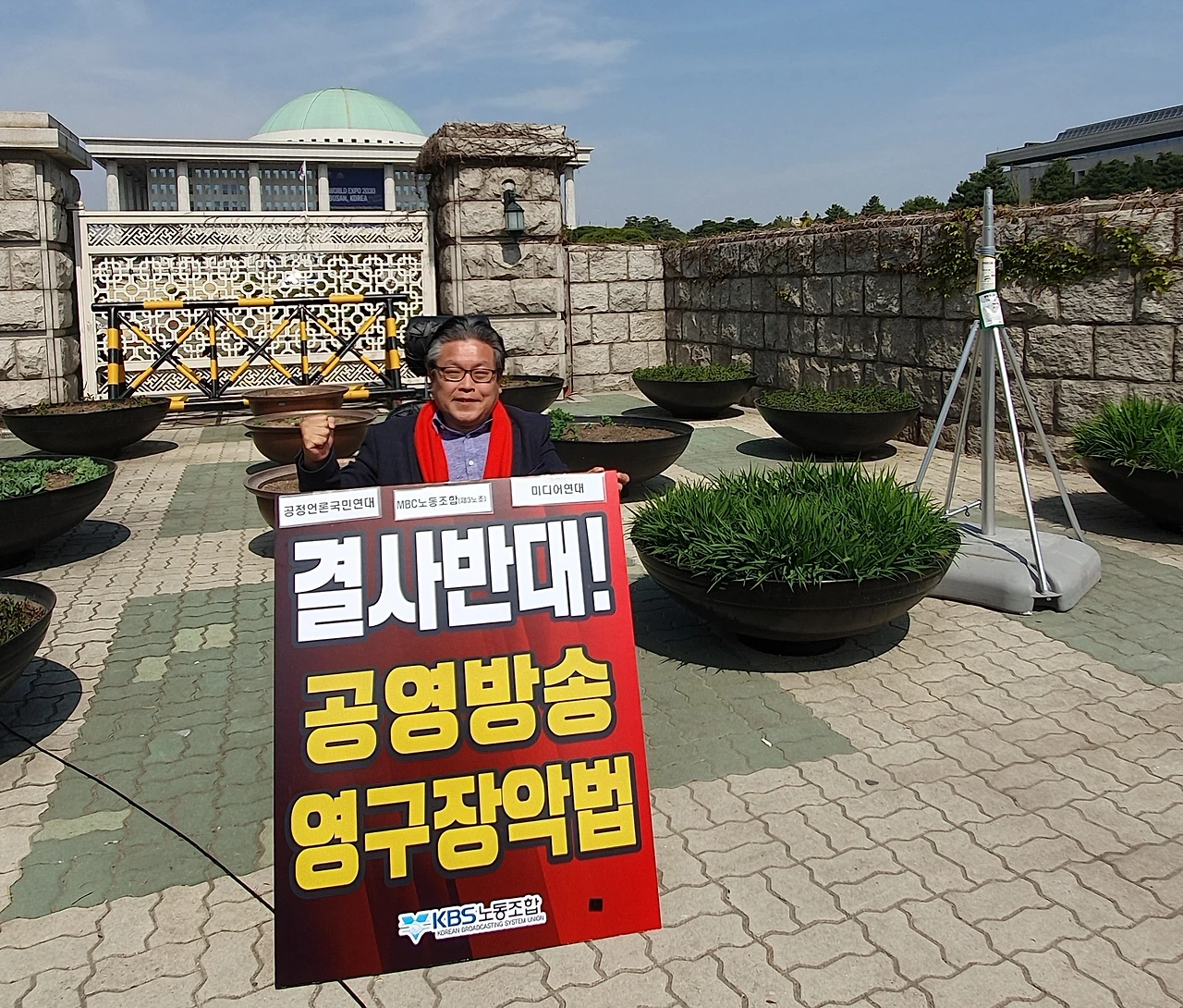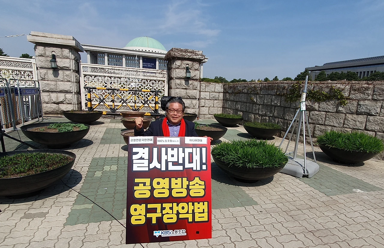 민주노총 공영방송 영구장악 방송법 개악 민주당 강행 처리 저지 위한 언론시민사회단체 기자회견 및 무기한 릴레이 1인 시위 출정식