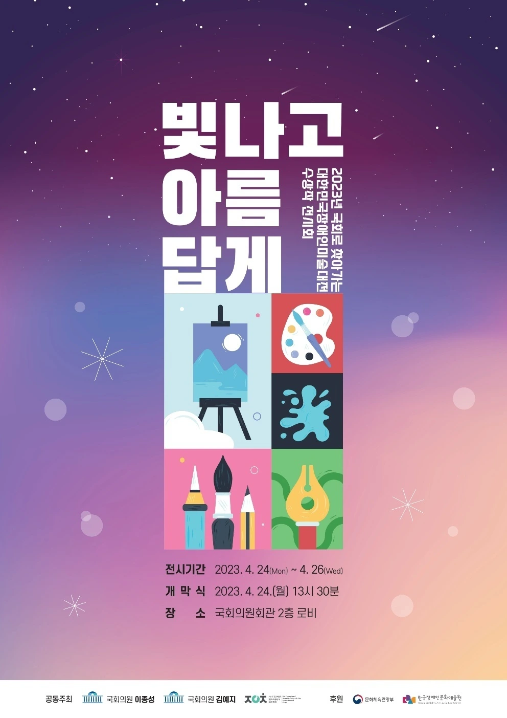정중규 국민의힘 장애인복지특별위원장 "장애인 예술 작품에 대한 우리 사회의 각별한 관심이 필요하다. 문화∙예술 관련 복지야말로 우리 사회 장애인복지에 있어 궁극적 복지인 까닭이다. 장애인과 비장애인이 하나 되는 과정에서 예술이 지니는 의미는 매우 대단하다. 장애예술가들의 활동이 우리나라 장애인 복지 수준을 한 단계 끌어올리는 중요한 역할을 하고 있다고 할 수 있는데, 이러한 점에서 오늘부터 사흘간 국회 의원회관 2층 로비에서 진행하는 '대한민국장애인미술대전 수상작 전시회'는 매우 큰 의미가 있다. 장애인이 만든 예술 작품에는 매우 많은 고통을 참아내며 눈물 정성을 들인 혼신의 노력이 숨어 있다. 진주조개가 진주알을 만들어 낼 때 많은 고통이 수반돼야 하는 것처럼 장애인들이 주옥같은 예술작품을 만들기까지는 말로 형언할 수 없을 정도의 대단히 많은 고통과 인내와 노력이 필요하다. 장애인 예술이 비장애인 작가들의 일반예술 작품과 다른 이유가 이 때문이다. 따라서 우리 사회는 장애인 예술 작품에 대해서는 더욱 각별한 관심을 가져야 한다. 정부와 국회 정치인들이 장애예술인들의 복지에 적극적인 관심을 가져야하는 이유이며, 제 자신도 주어진 위치에서 가일층 발전하는 장애인 예술 복지를 위해 최선을 다하겠다."