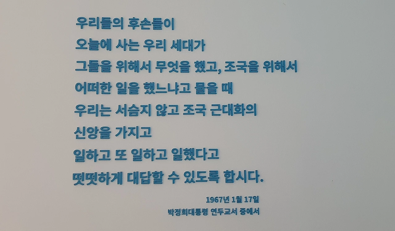 대한민국은 어떠한 과정을 거쳐 여기까지 온 것일까. 참으로 다들 열심히 살았고, 그들의 피땀으로 지금의 대한민국이 이룩된 것이다. 물론 거기에 박정희라는 걸출한 리더의 리더십이 앞장서서 이끌며 함께 했던 것이다.
