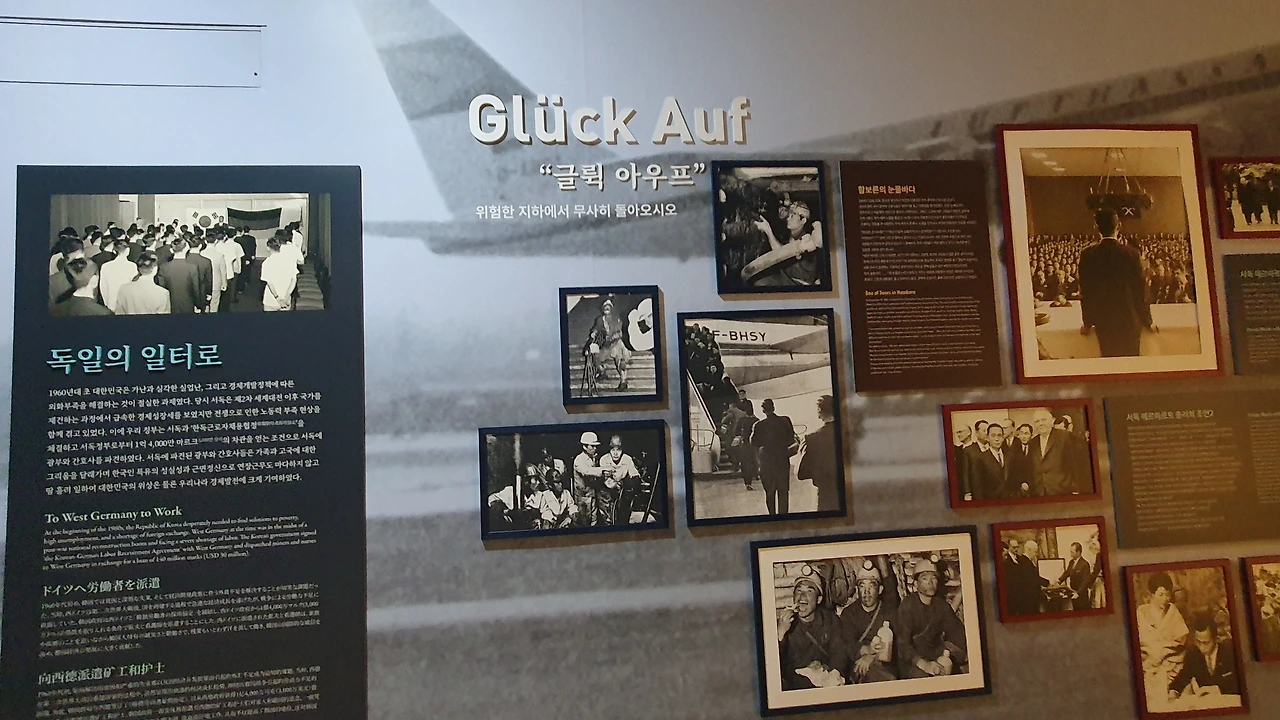 절대빈곤의 대한민국 그때 그 시절..돈을 벌려 광부와 간호사로 독일로 간 해외파견 노동자들과 그들을 만나려고 독일 방문한 박정희 육영수 대통령 부처의 사진들에서 ‘Glück auf!(오늘도 행운을!)' 'Lotus Blume(대한민국에서 온 연꽃)'라는 문장을 보는 순간 가슴이 무너져내리며 눈시울이 뜨거워졌다.