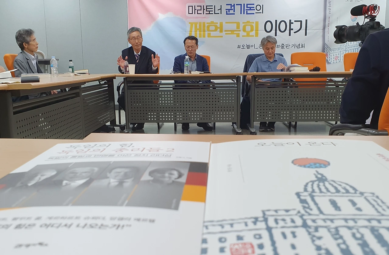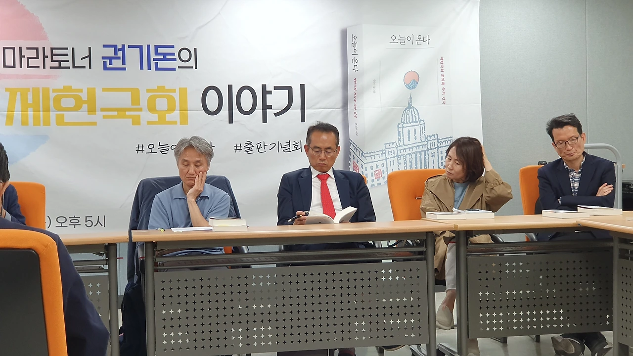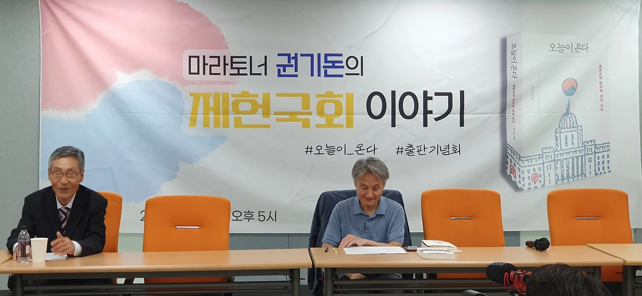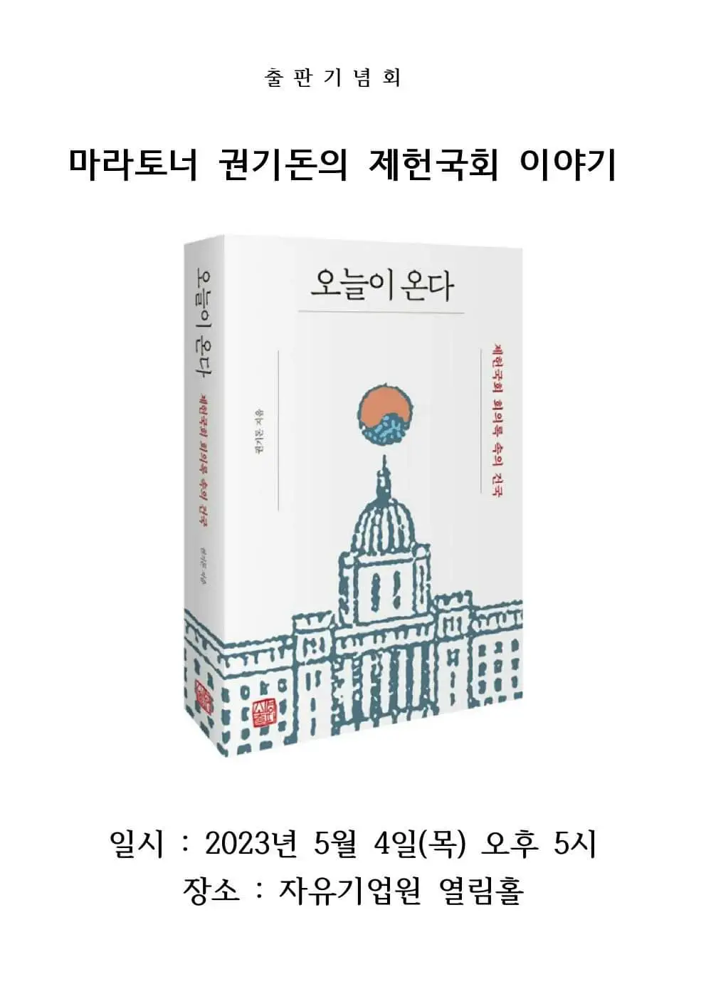 최근 제헌국회 회의록을 분석한 책 ‘오늘이 온다’(소명출판·사진)를 펴낸 권기돈 씨(60)는 이렇게 말했다. 책을 펴낸 건 한국 사회에서 정치적 논쟁의 근거 자체가 틀린 경우가 많은 걸 목격했기 때문이라고 했다. 권 씨는 “행정부와 사법부가 구성되기도 전 세워진 제헌국회는 대한민국의 뼈대와 근육을 만든 최초의 국가기관”이라며 “제헌국회를 구성한 5·10 총선거가 열린 지 75주년을 맞아 제헌국회 회의록을 읽으며 대한민국의 의미를 생각해 보면 좋겠다”고 했다.