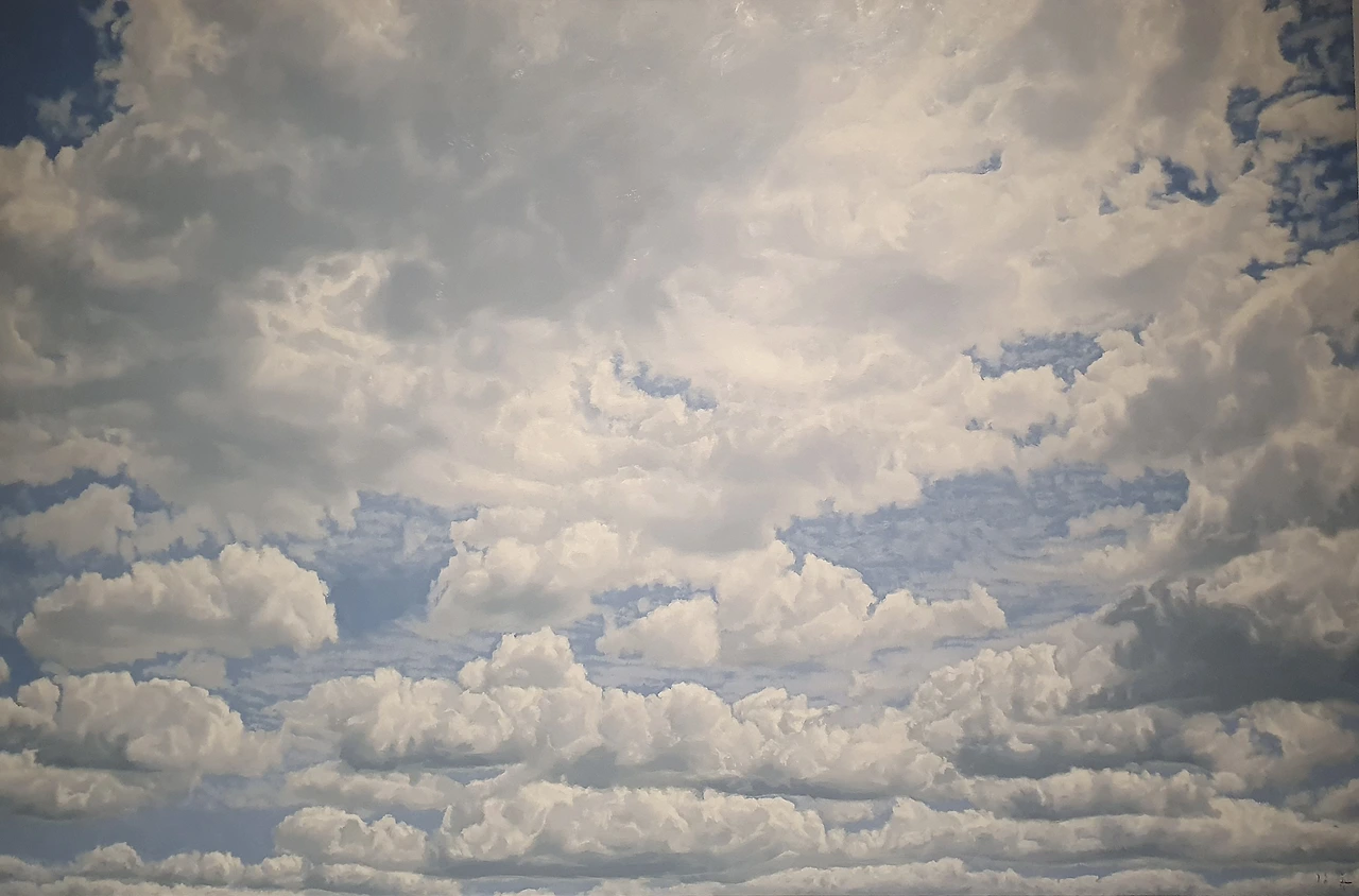 강운(Un Kang, 1966년 전라남도 강진 출생)은 주로 ‘하늘’, ‘구름’, ‘공기’, ‘물’처럼 우리와 늘 함께하는 소재를 다룬다. 20대에 그렸던 구름이 젊은 작가로서의 내밀함과 치열함, 시대적 요구에 반응하는 긴장감 있는 장면들을 담았다면, 중견작가에 들어서면서 그리는 구름과 하늘은 보다 조형성에 주목한 모습을 보여준다. 강운은 이러한 특성을 ‘파랑’에 빗대어 표현하여 색이 담고 있는 일체감과 순수한 형태에 대한 오랜 기간의 고민을 풀어내고 있다. 지속적으로 다양한 시도를 거치면서 강운의 작업은 자연의 모습이 보여주는 순수한 원형성과 작품 세계의 에너지를 일관되게 붓의 획에 담아 귀결하고 있다. 이같이 강운의 작업에서 우리가 숨 쉬듯이 접하는 매일의 소재는 그 자체로 갖고 있는 조형의 리듬으로 표현되고 있다. 강운은 인간과 자연의 관계를 생각하면서 예술과 사회의 접점을 찾아가는 과정을 중요하게 여기며 회화 그 자체로서의 순수성을 나타내는 것이다. 강운은 중견작가로 접어들면서 작고 얇은 한지 조각을 오려 붙이면서 수행적인 작업 세계가 더욱 체계적으로 만들어지고 있다. 강운은 ‘구름’, ‘공기’, ‘물’ 등의 표현적인 방법에 주목하여 창작의 과정을 행위로 보고 여기에 무아의 정신세계를 덧대고 있다. 최근에 비정형적인 형식에 점점 몰입하여 이제는 끊임없이 화면과 마주하며 오랜 노력의 산물로서 작업을 대하고 있다.