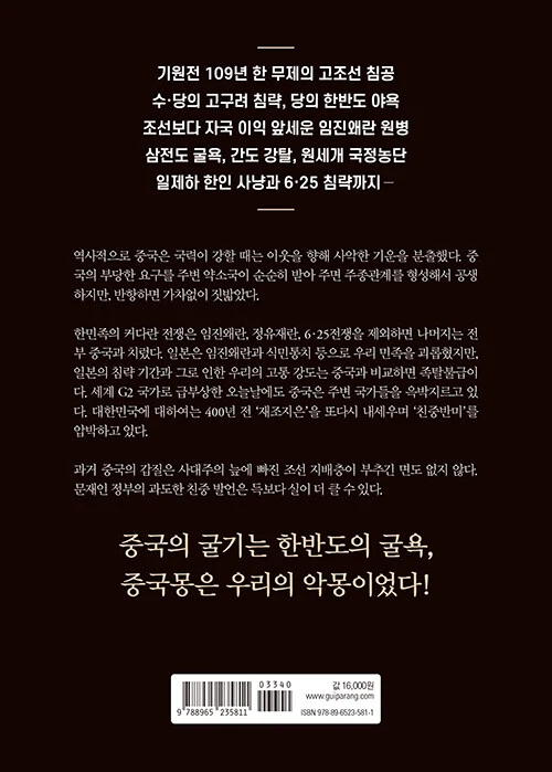 역사 속 중국의 갑질, 특히 조선왕조 성립 후의 대중국 저자세는 사대주의 늪에 빠진 조선 지배층이 부추긴 면도 없지 않음을 책은 솔직히 고백한다.