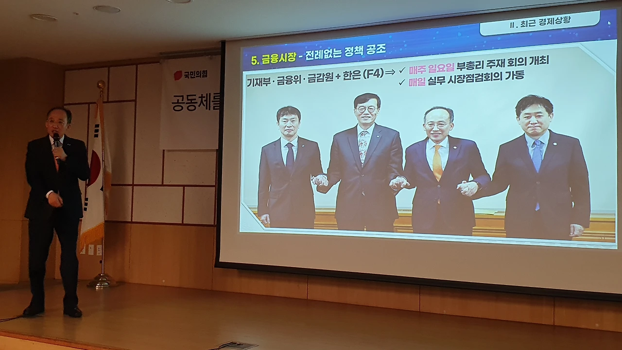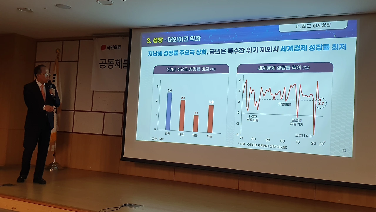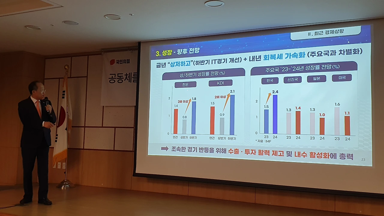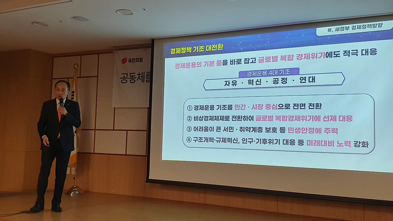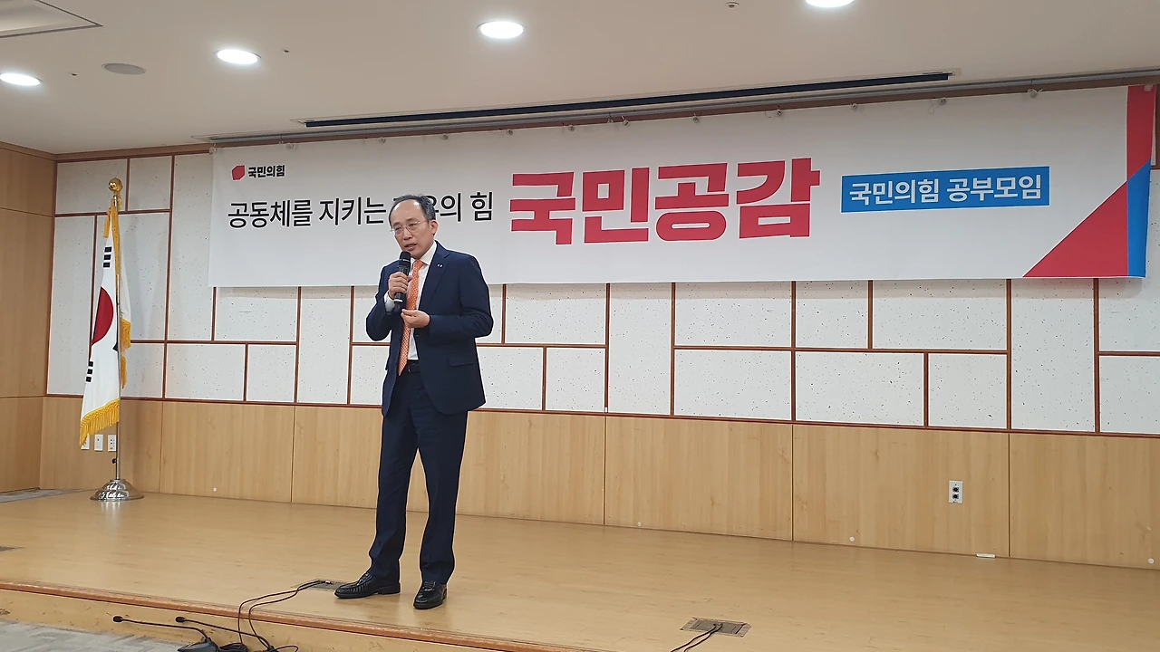 국민의힘 공부모임 ‘국민공감’ 특강으로 친정 찾은 추경호 “민주당의 엉터리 경제 비판 주눅들 필요 없어..자신감 가져도 된다” 긍정 전망..각종 지표 비교하며 ‘집중 강의’