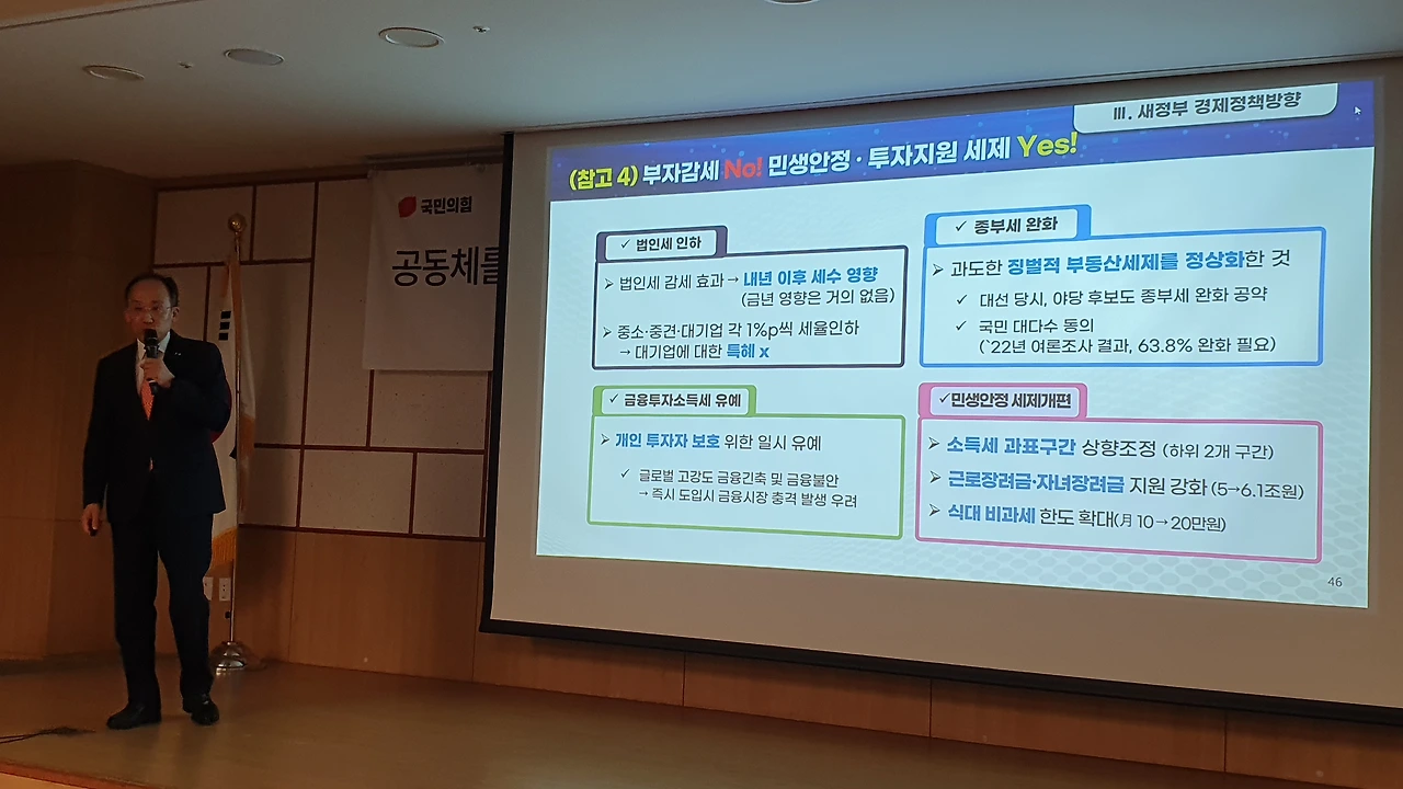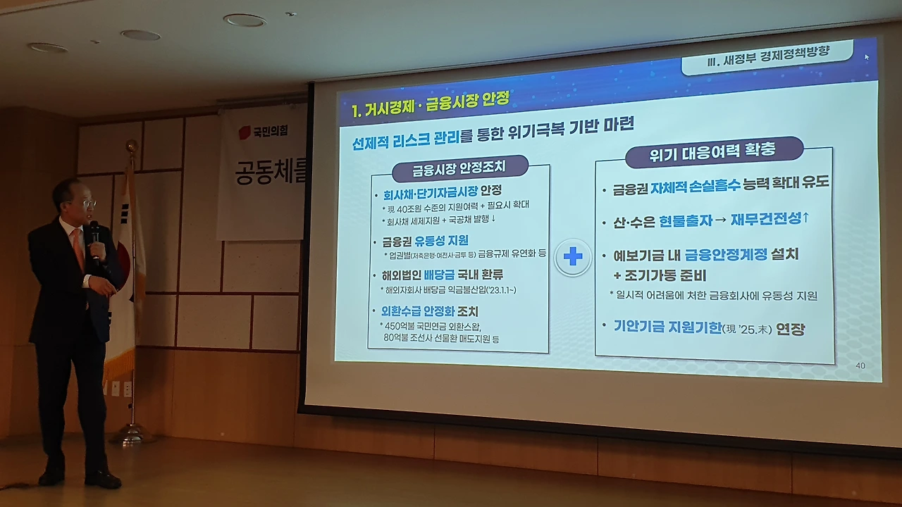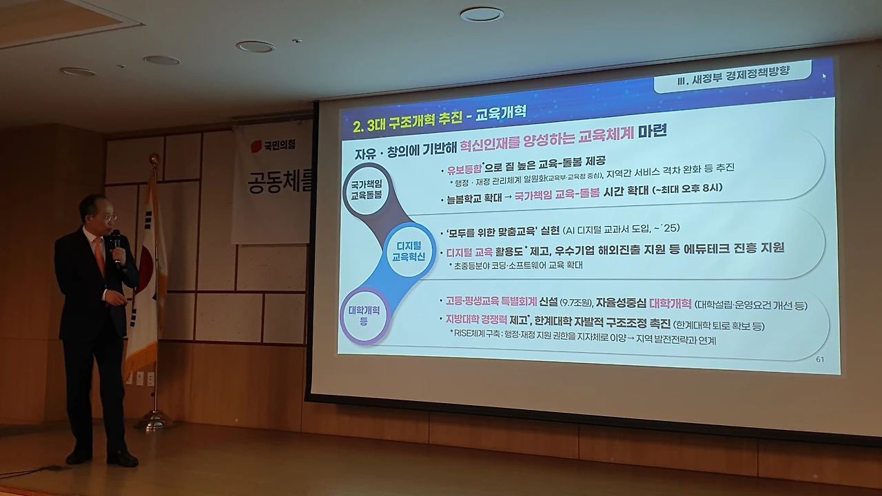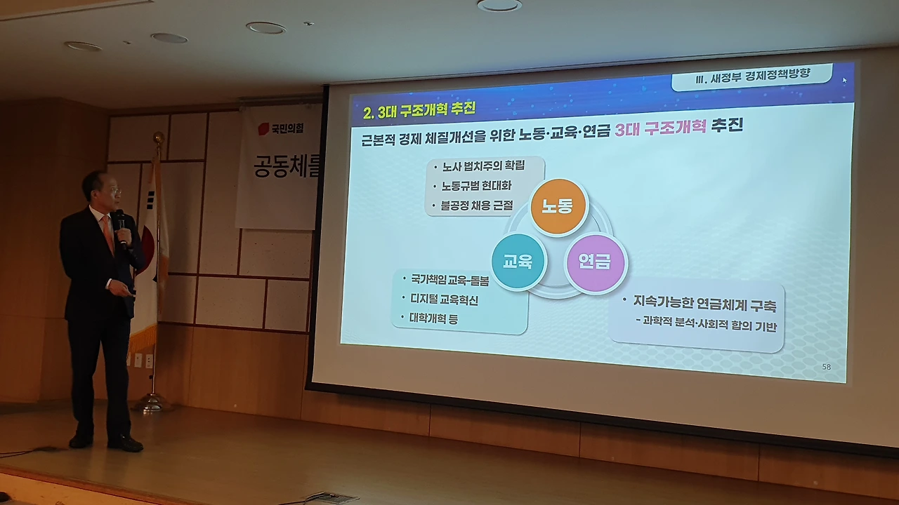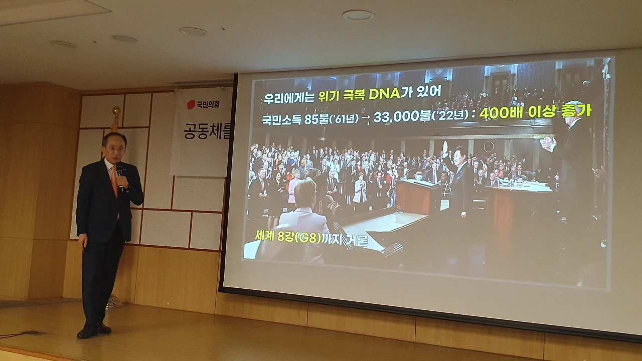 국민의힘 공부모임 ‘국민공감’ 특강으로 친정 찾은 추경호 “민주당의 엉터리 경제 비판 주눅들 필요 없어..자신감 가져도 된다” 긍정 전망..각종 지표 비교하며 ‘집중 강의’