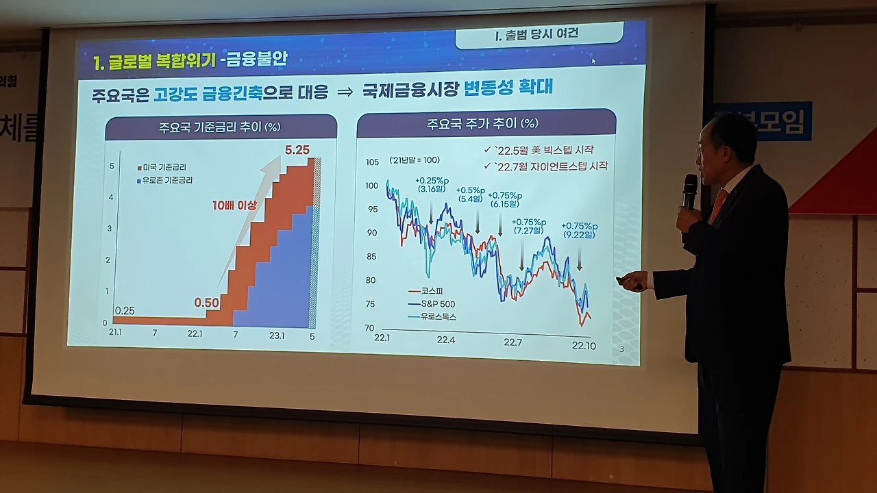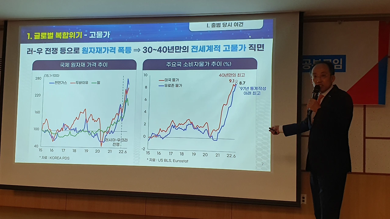 추 부총리는 “고물가 등 굉장히 어려운 상황에서 (윤석열 정부가) 시작했다”면서 각종 지표를 비교 분석했고, 하반기 경제에 긍정적 전망을 내놨다.