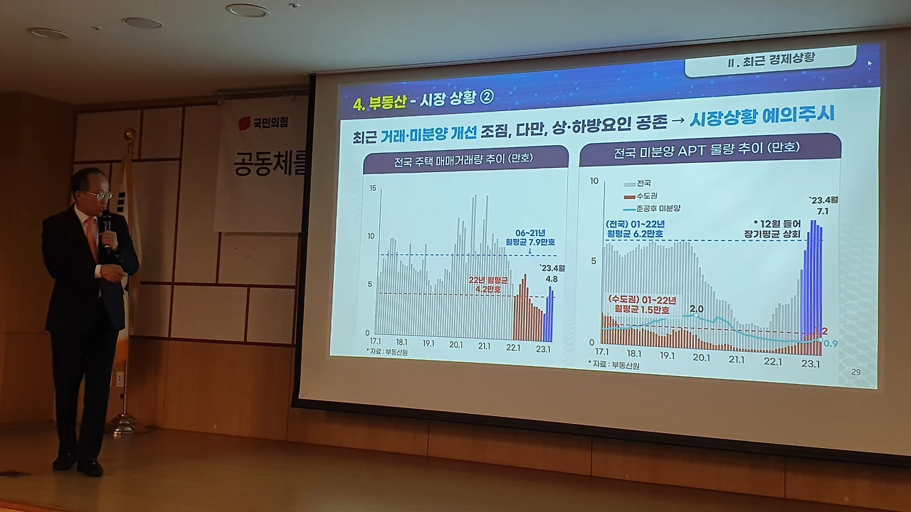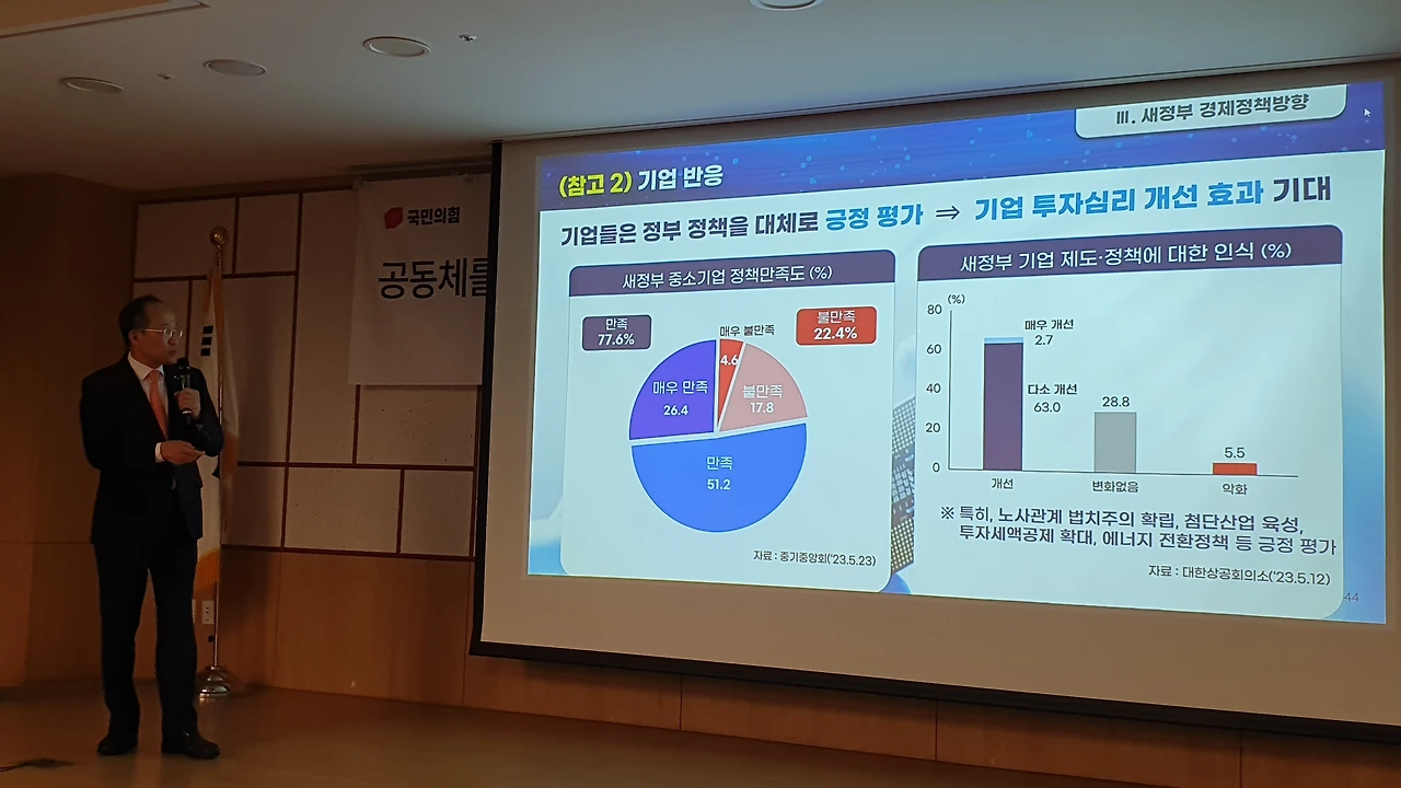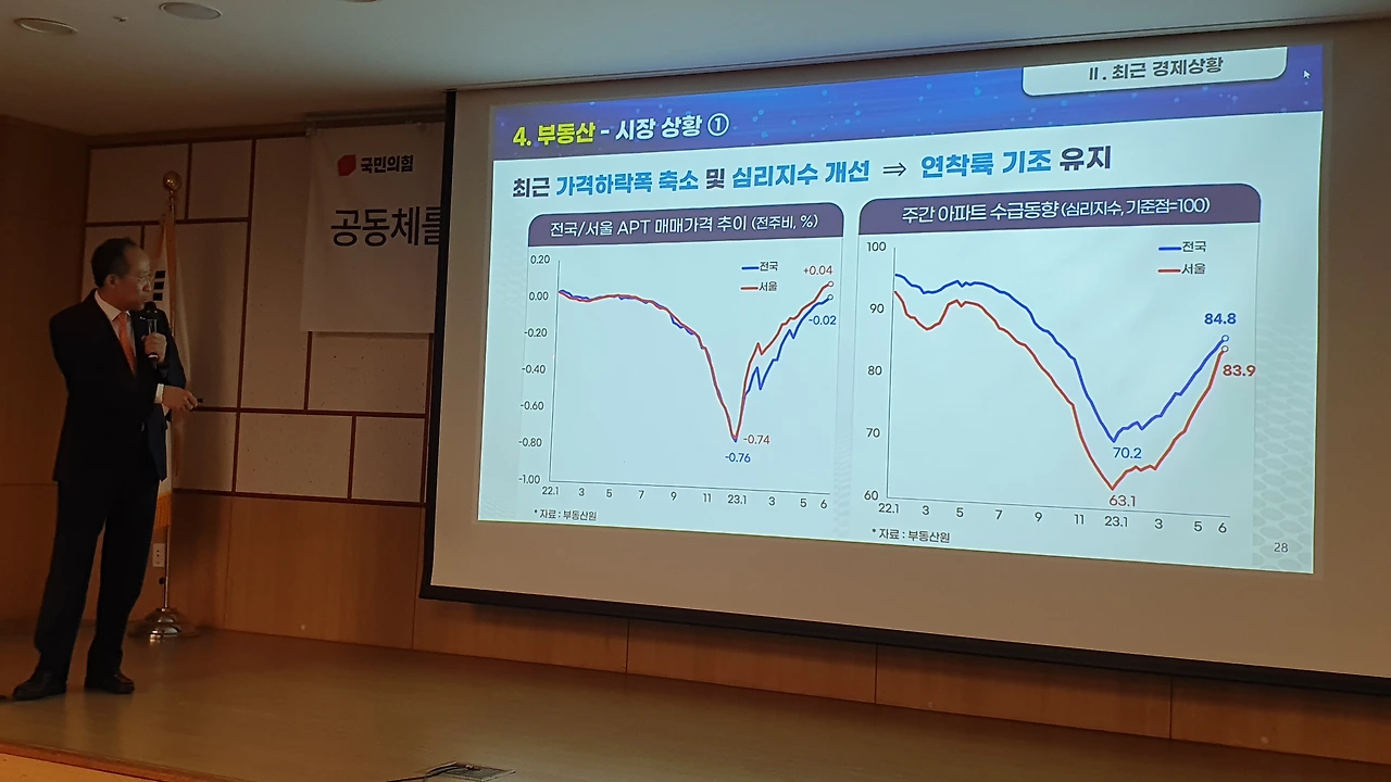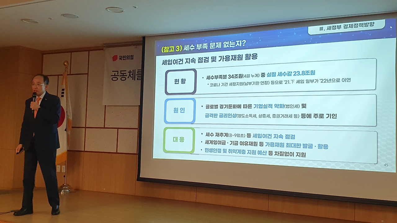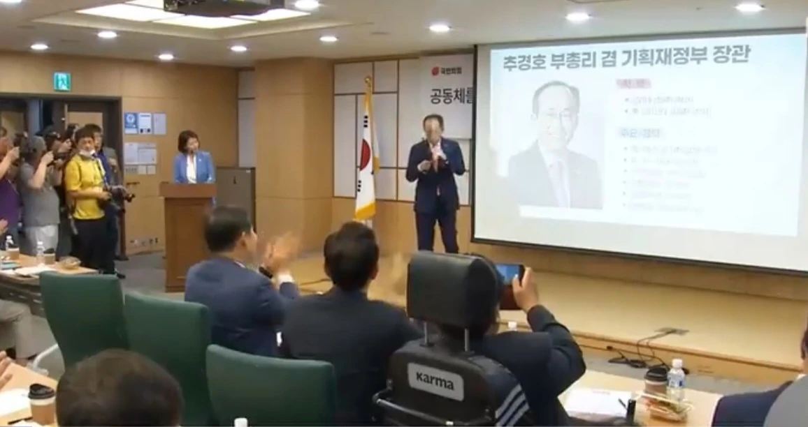 추경호 부총리 겸 기획재정부 장관이 6월 14일 국민의힘 친윤(친윤석열) 공부모임 ‘국민공감’에서 윤석열 정부의 각종 경제 지표가 문재인 정부 때보다 나아지고 있다며 여당 의원들에게 ‘자신감 있는 대응’을 독려했다.
