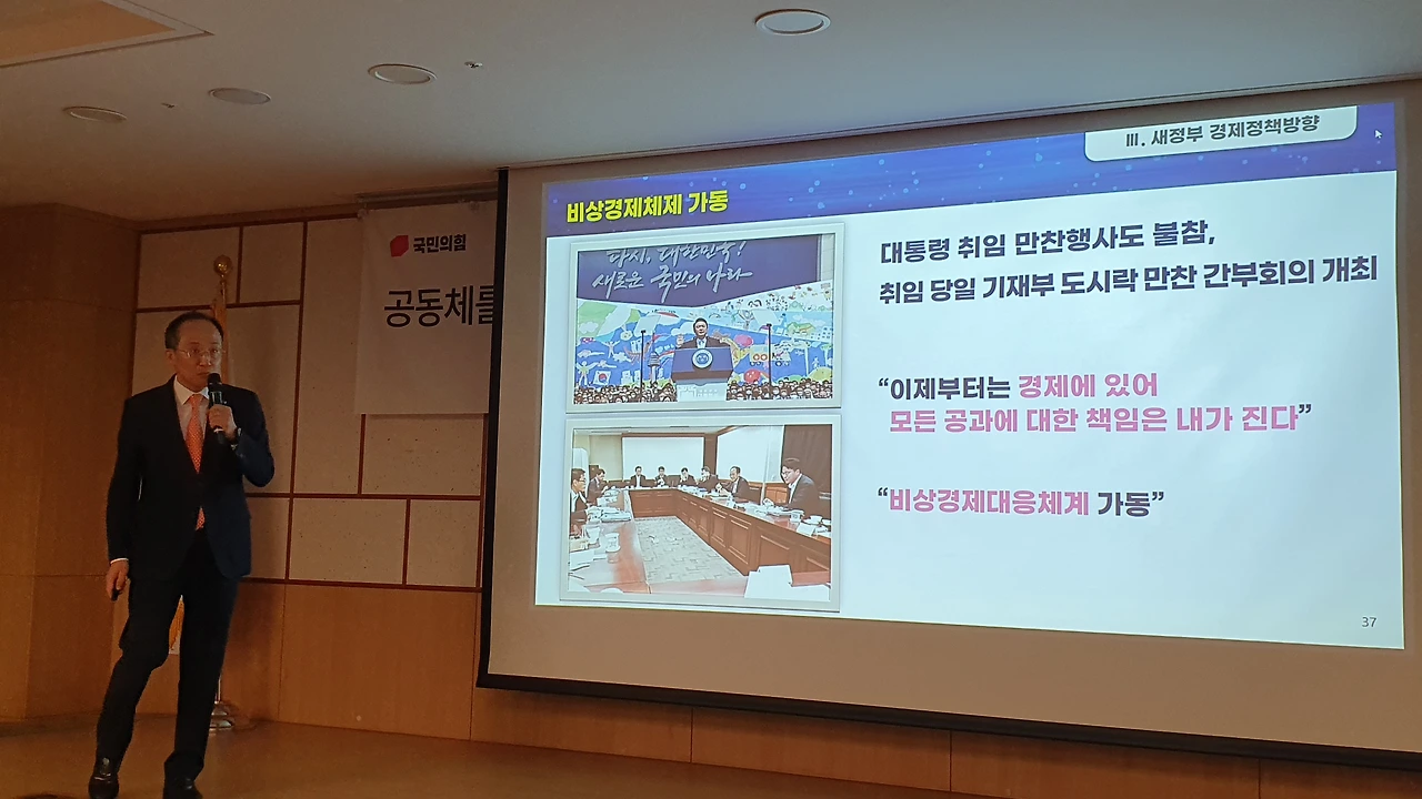 이날 추 부총리의 강의는 참석 의원들이 특강 자료를 별도 요청할 정도로 큰 호응을 얻었다. 특히 내년 총선을 앞두고 현장에서 야당의 경제 관련 비판에 대응할 탄탄한 근거와 논리를 일목요연하게 정리할 수 있었다는 호평이 나왔다.