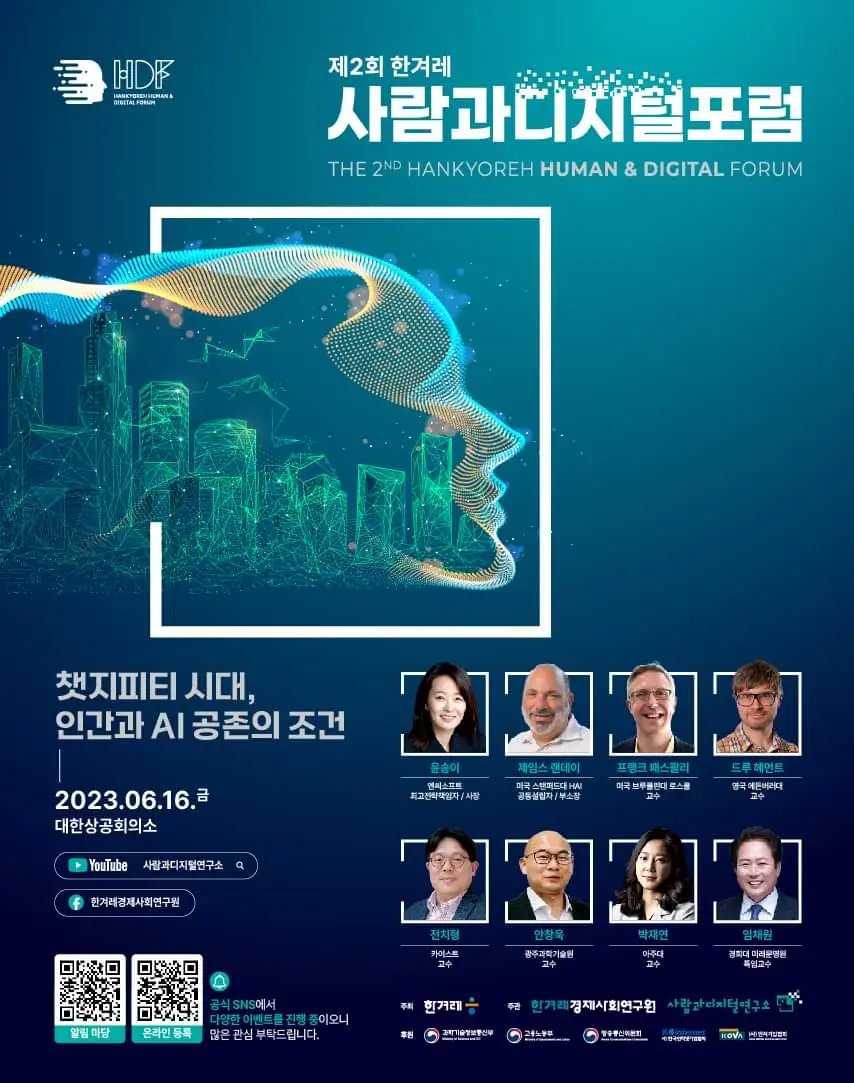 이번 사람과디지털포럼에서는 인공지능의 미래에 대해 유토피아 디스토피아의 이분법을 넘어 잠재적 혜택과 그 위험을 두루 살폈다. 인공지능이 인간의 고유한 영역인 예술까지 어떻게 확장하고 있는지 살펴보고 예술의 미래, 인간의 미래도 논의했다. 좀 더 인간 친화적인 인공지능을 위해 우리 사회가 준비해야 하는 윤리적 과제, 그리고 인공지능 기술에 대해 막연한 기대와 불안을 넘어서 지혜롭게 인공지능 기술을 사용하고 대처하는 ‘인공지능 리터러시’도 논의했다.