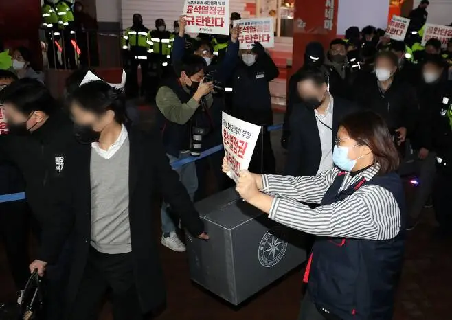 국가정보원(NIS) 요원들이 2023년 1월 18일 오후 서울 중구 전국민주노동조합총연맹(민주노총) 서울 사무실에서 국가보안법 위반 혐의로 압수수색을 하고 있다