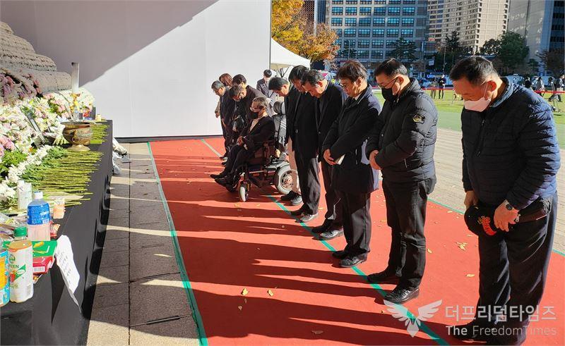 지난해 11월 5일, 윤석열 대통령 지지모임 '공정한나라'에서 이태원 참사 희생자 추모 서울시청광장 합동분향소를 단체 조문하고 있다 (사진=더프리덤타임즈)