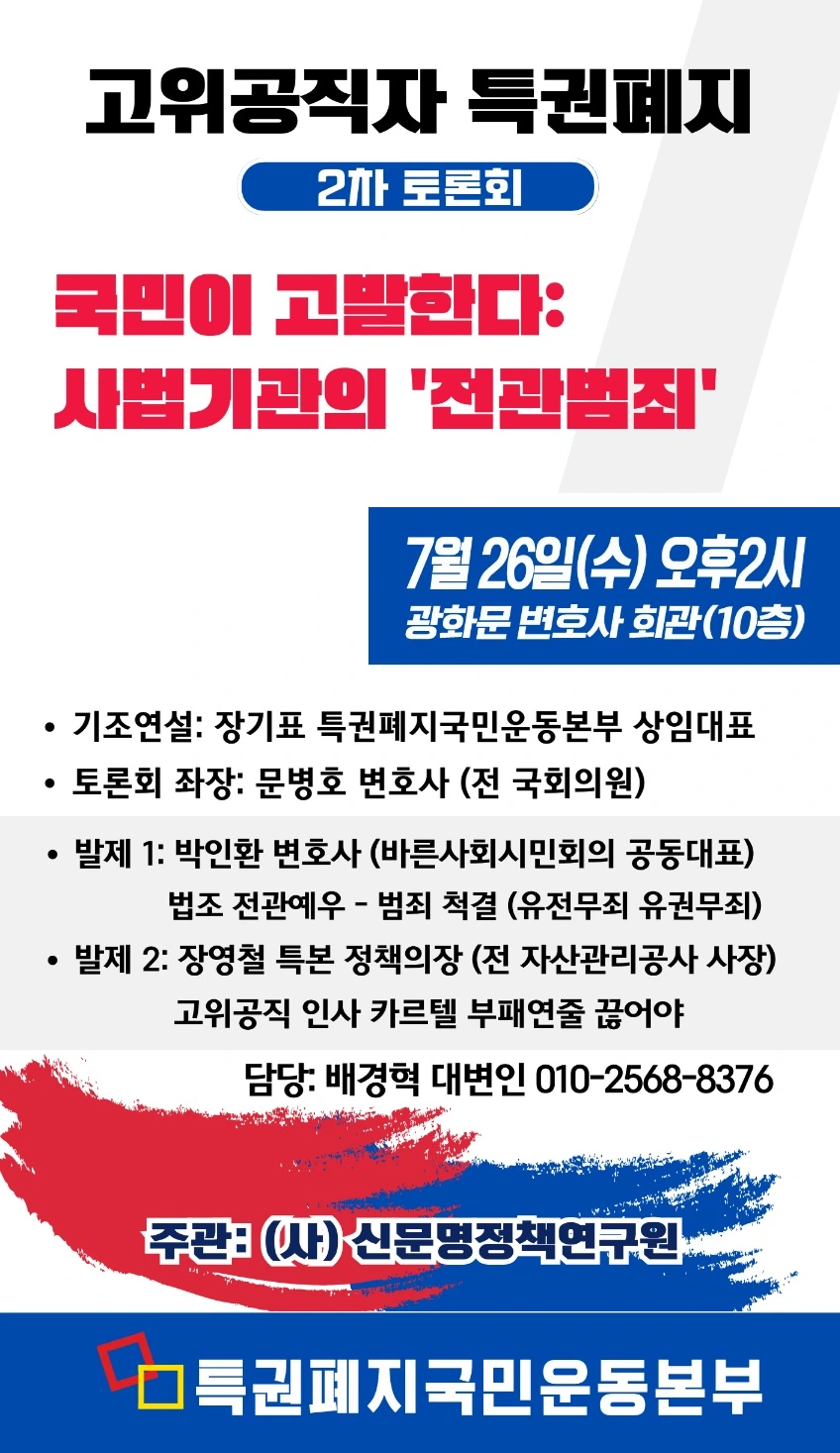 정상배 정치의 종식과 정치의 정상화를 위한 고위공직자 특권폐지 국민운동에 국민여러분의 적극적인 지지와 참여가 있기를 간곡히 호소합니다.