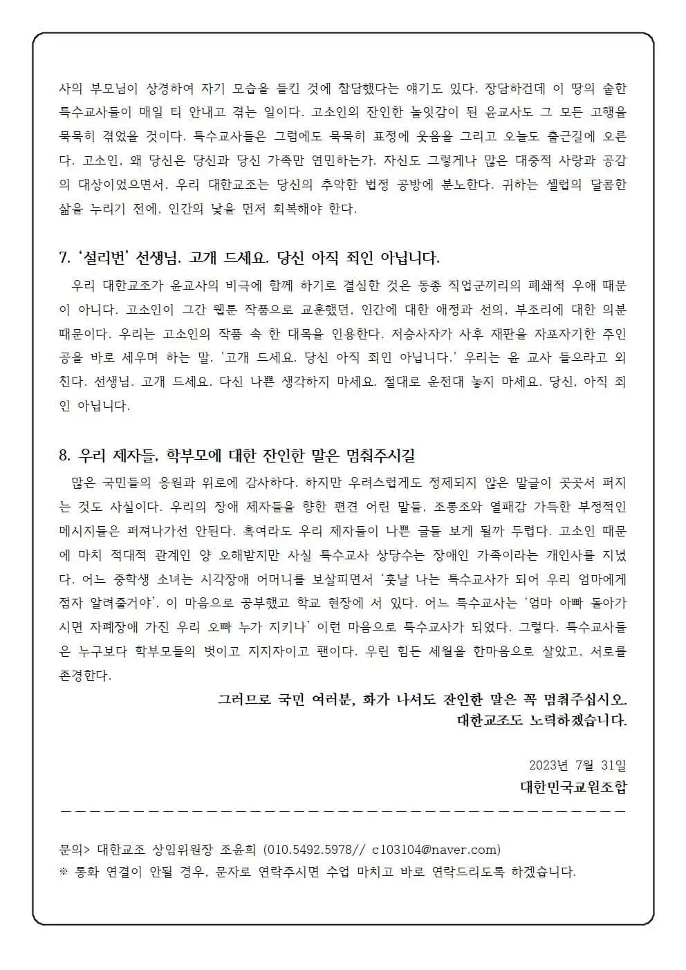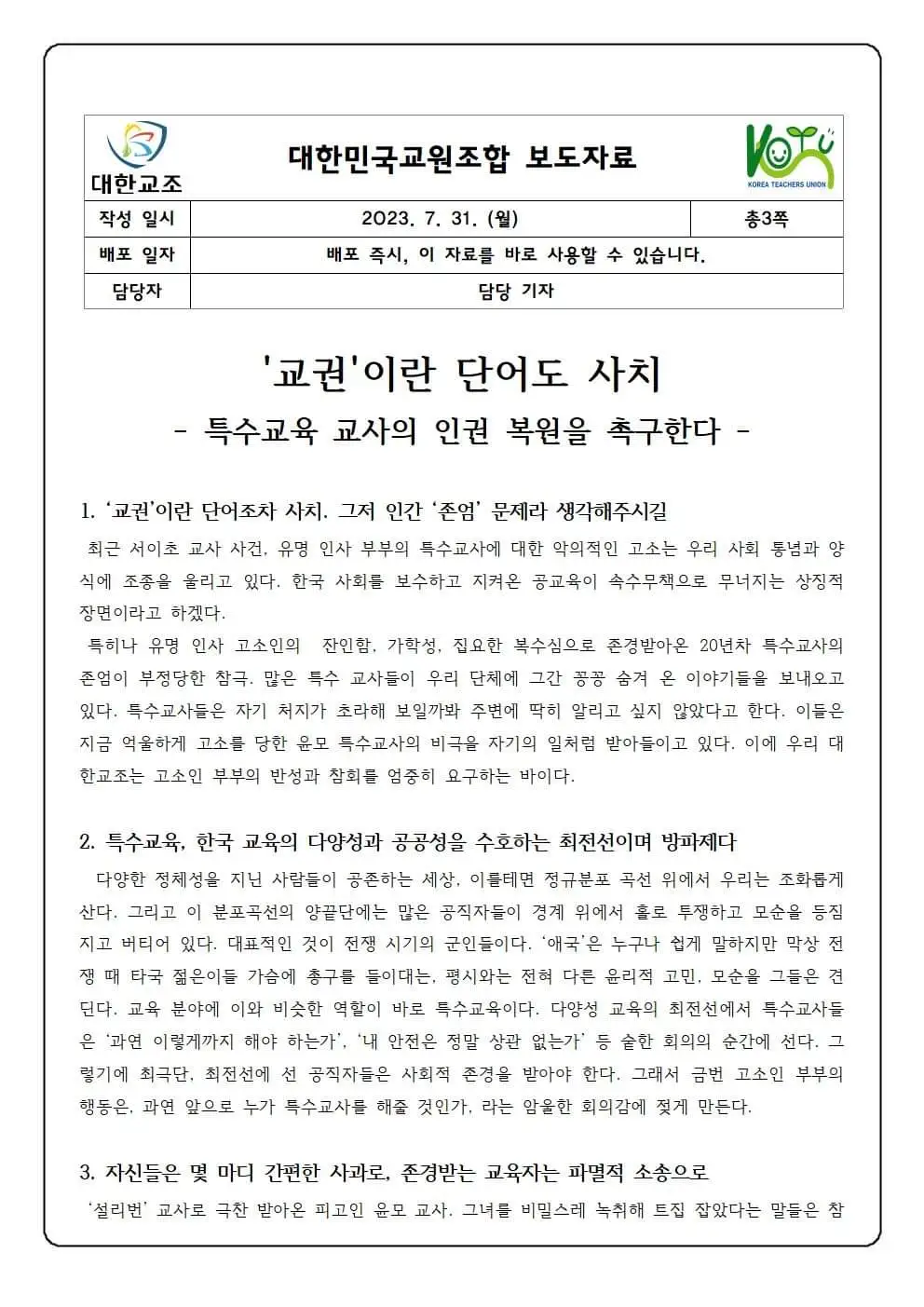 주최 : 대한민국 교원조합, 사회정의를 바라는 교수모임