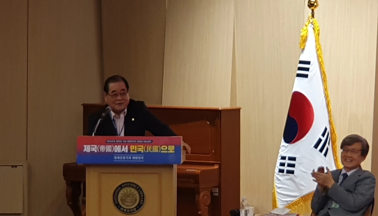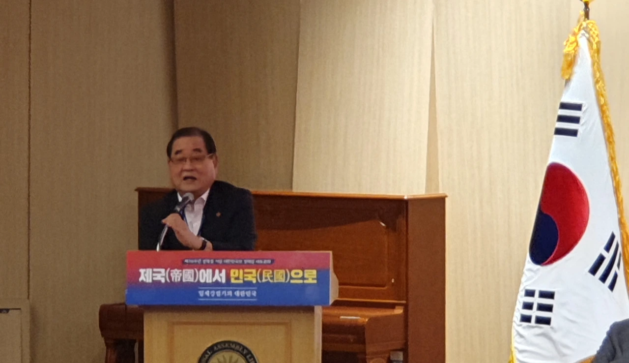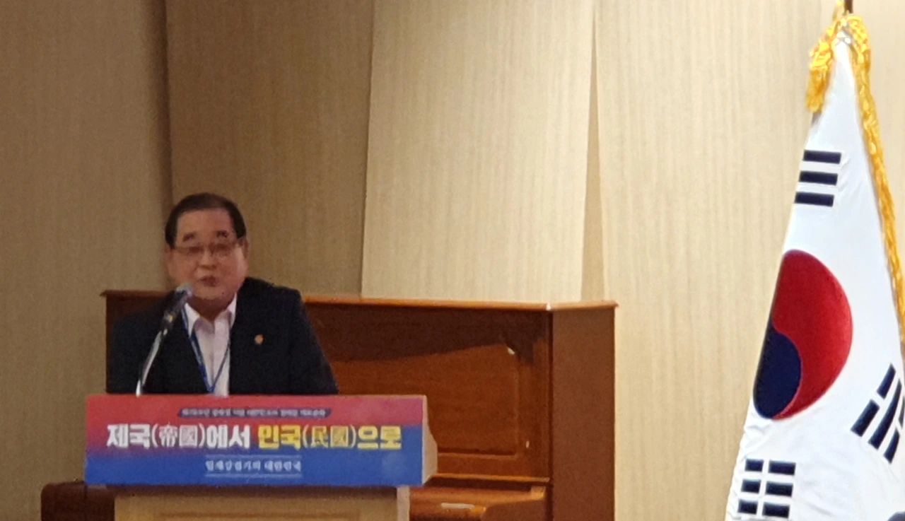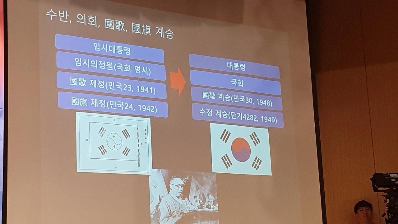 그는 일제강점기 독립운동 과정을 설명하며 “과거 상해 임시정부, 연해주 국민회의 정부, 한성 임시정부 등 3개 체제가 통합돼 임시정부의 행정 수반은 이승만을 선출했다”며 “이후 대한민국이란 국호와 태극기란 국기가 계승됐고 헌법에서 명시된 바와 같이 대한민국임시정부의 ‘법통’을 계승한 것이 오늘날의 대한민국”이라고 지적했다.