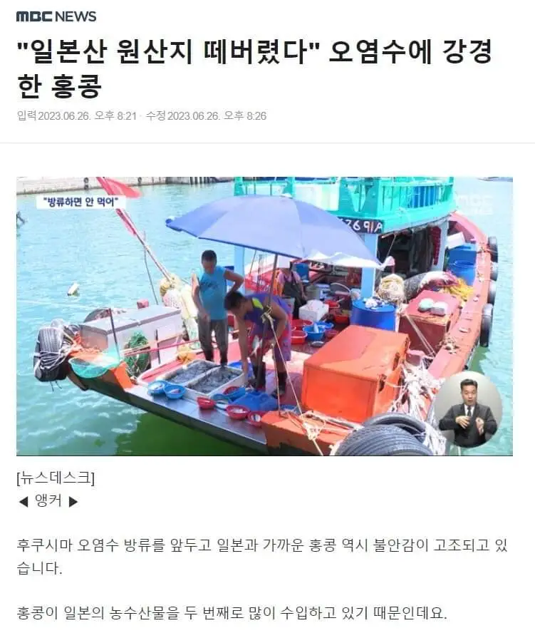 지난 6월 26일 MBC 뉴스데스크는 홍콩 어민들도 후쿠시마 오염 처리 수 방류를 강력히 반대한다는 내용을 보도에 언급된 현지인들의 통역 자막을 조작했다.